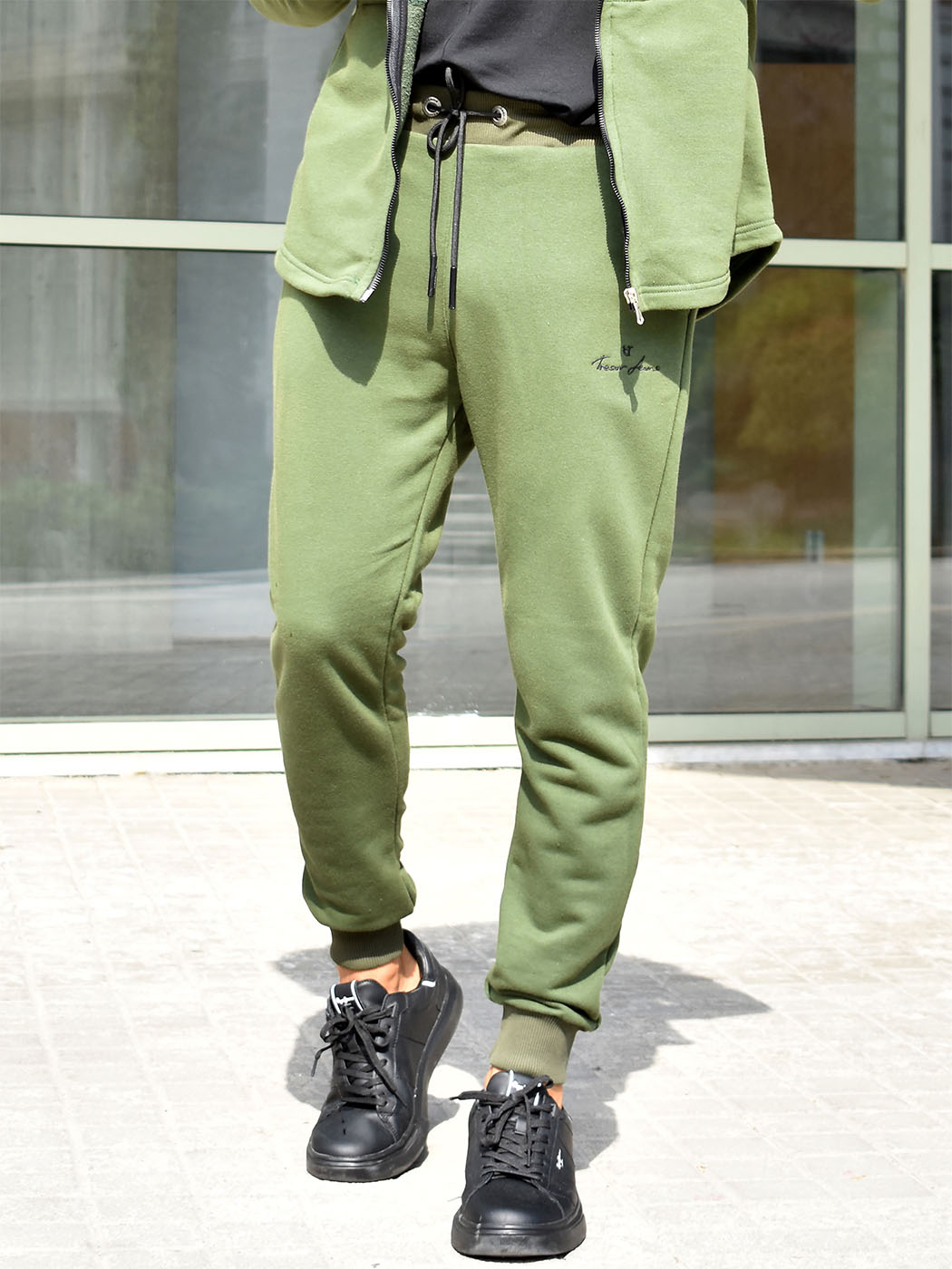 Μία αθλητική φόρμα τύπου jogger με λάστιχο και κορδόνι στη μέση, λάστιχο στους αστραγάλους για κάθε στιγμή της ημέρας και φυσικά για μία έξοδο το βράδυ, όπως επίσης και στο γυμναστήριο για να κάνετε τη διαφορά σε κάθε σας ντύσιμο. Διαθέτει δύο τσέπες στο πλάι και μία πίσω, κεντημένο λογότυπο το οποίο δίνει ένταση στο σύνολο.