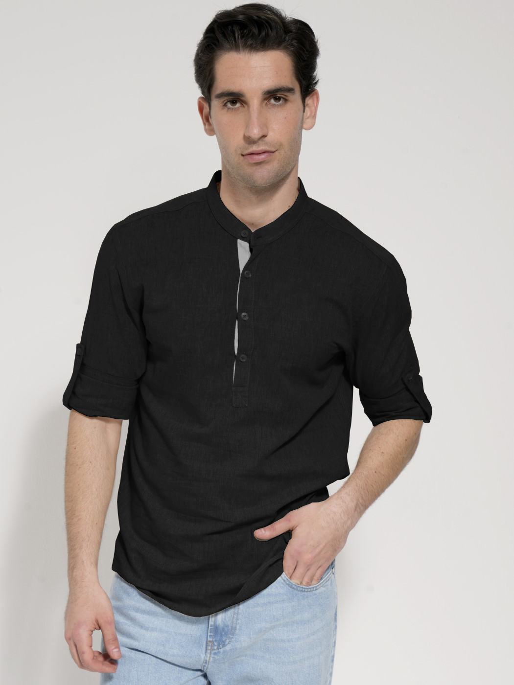 Ανδρικό Λινό Πουκάμισο Slim 33-6116 Μαύρο