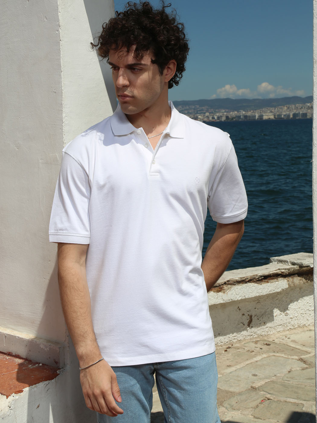Ανδρικό POLO Κοντομάνικο T-shirt 10-693 Λευκό – Μεγάλα Νούμερα