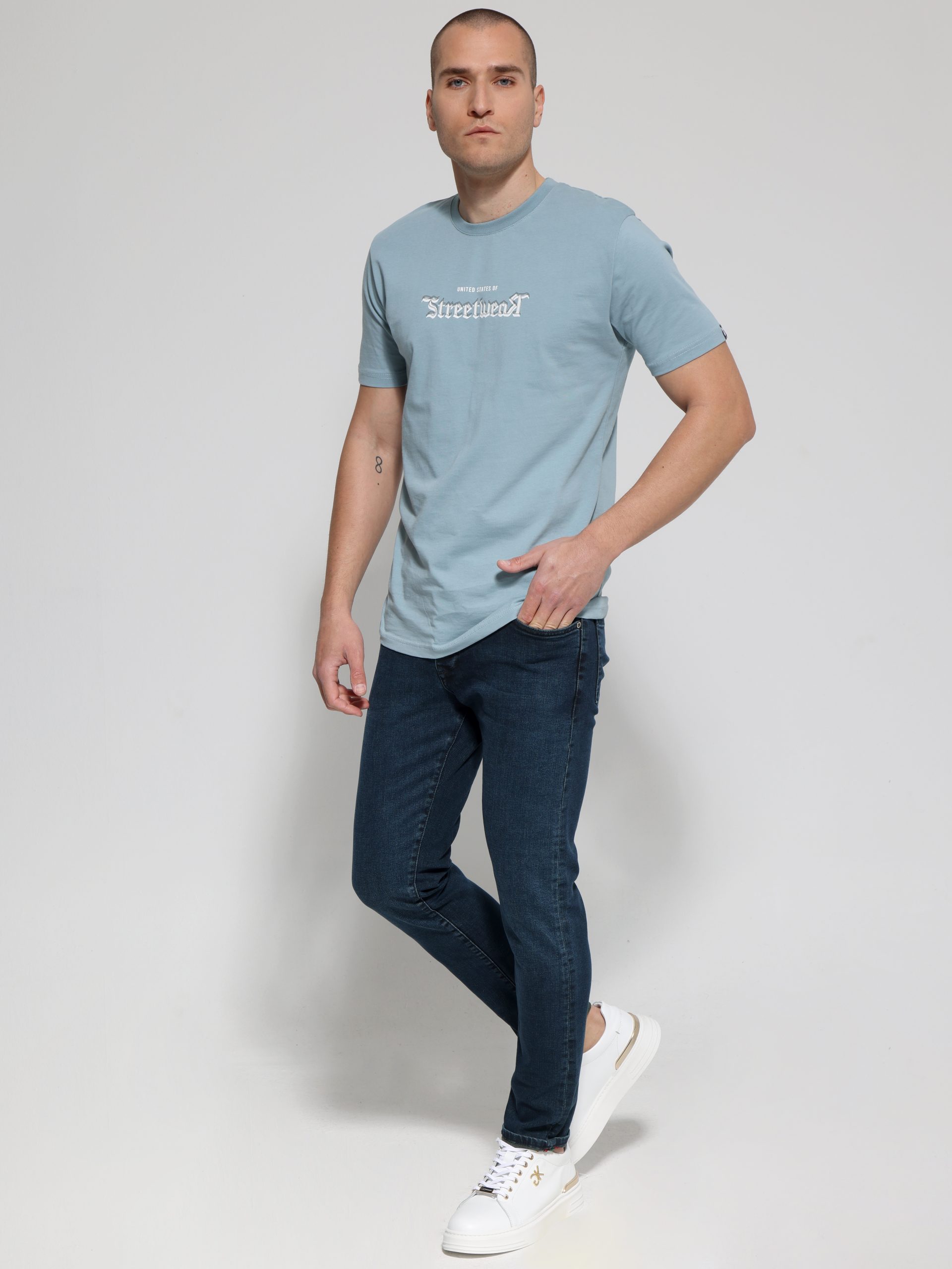 Ανδρικό Βαμβακερό Κοντομάνικο T-shirt 10-684 Σιελ