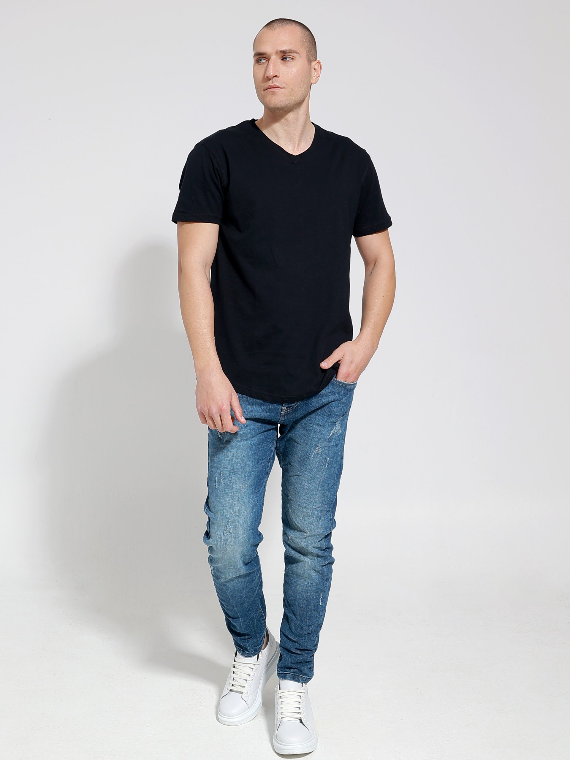 Oversized Κοντομάνικο T-shirt Με V Λαιμό 10-710 Μαύρο