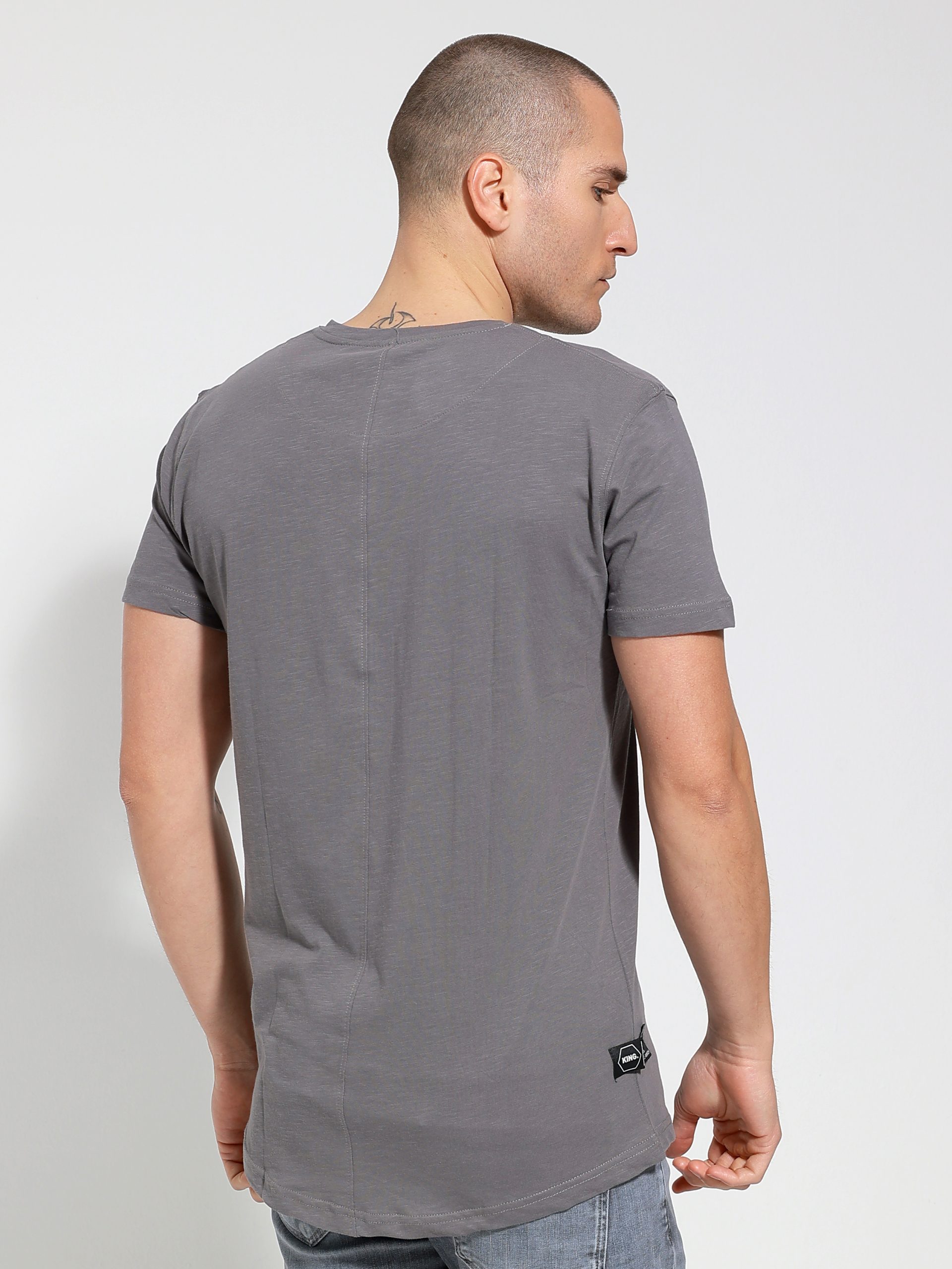 Oversized Κοντομάνικο T-shirt Με V Λαιμό 10-711 Γκρι