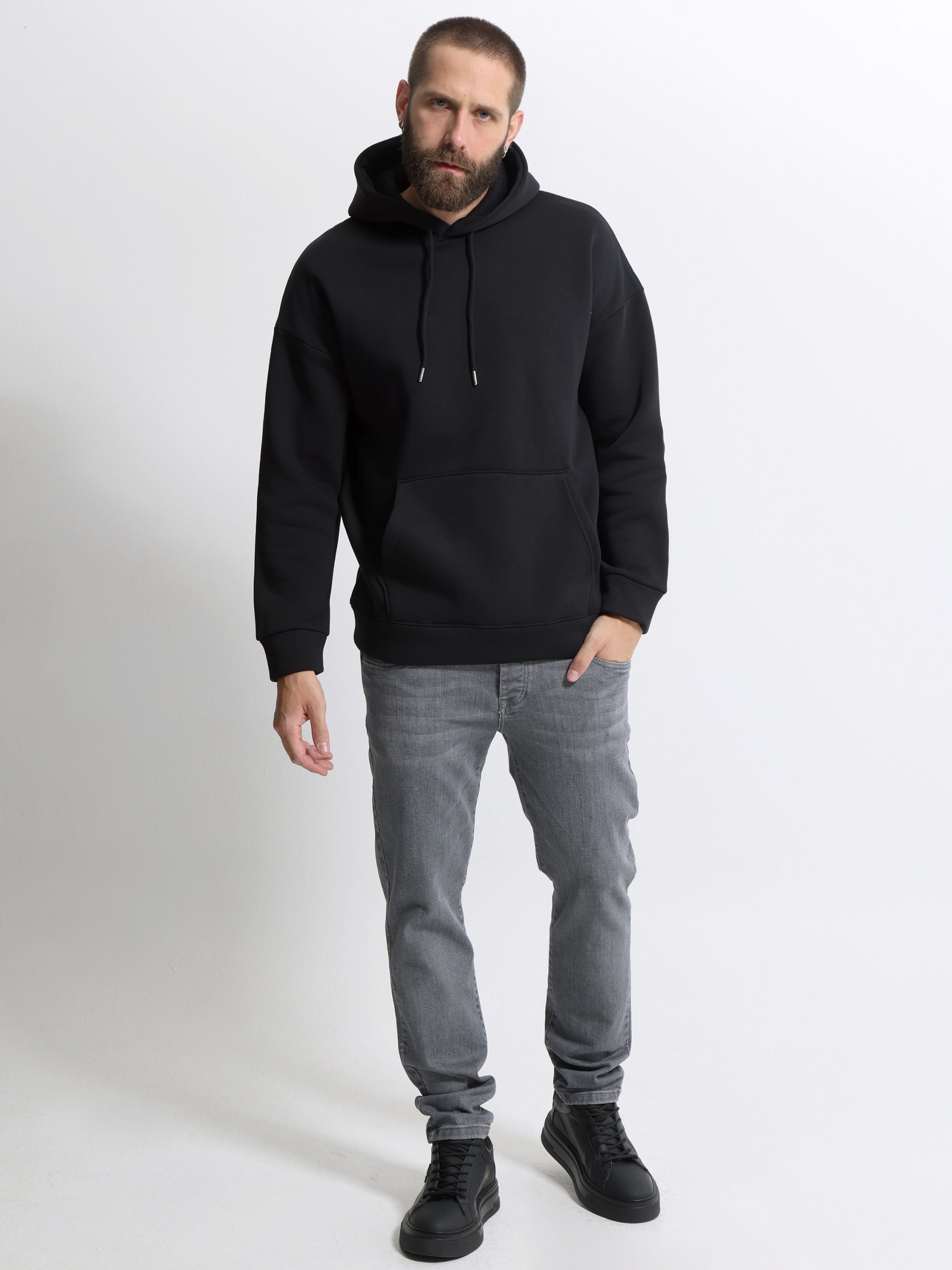 Μπλούζα Hoodie Με Κουκούλα Oversize BERTO 206054 μαύρο
