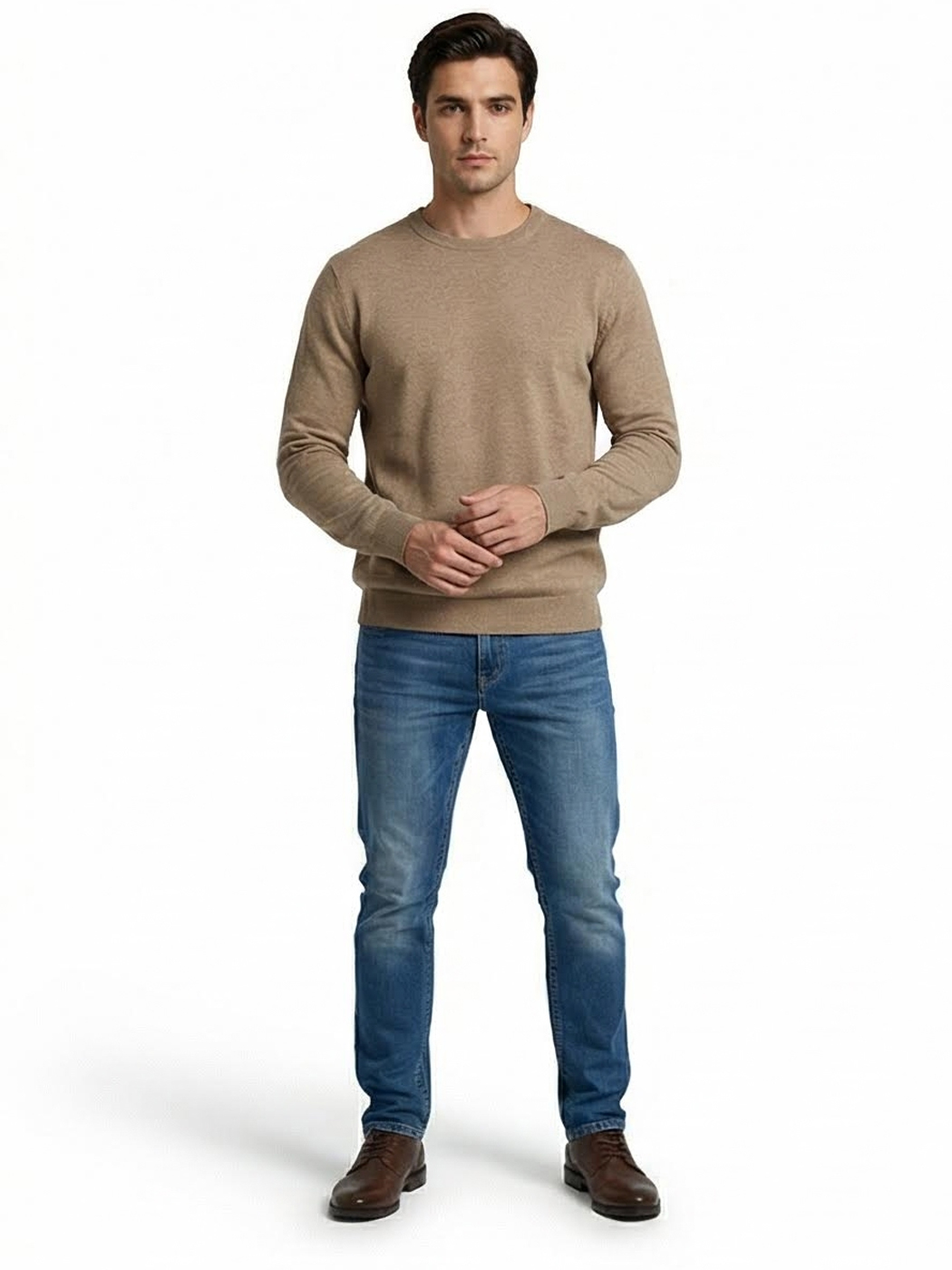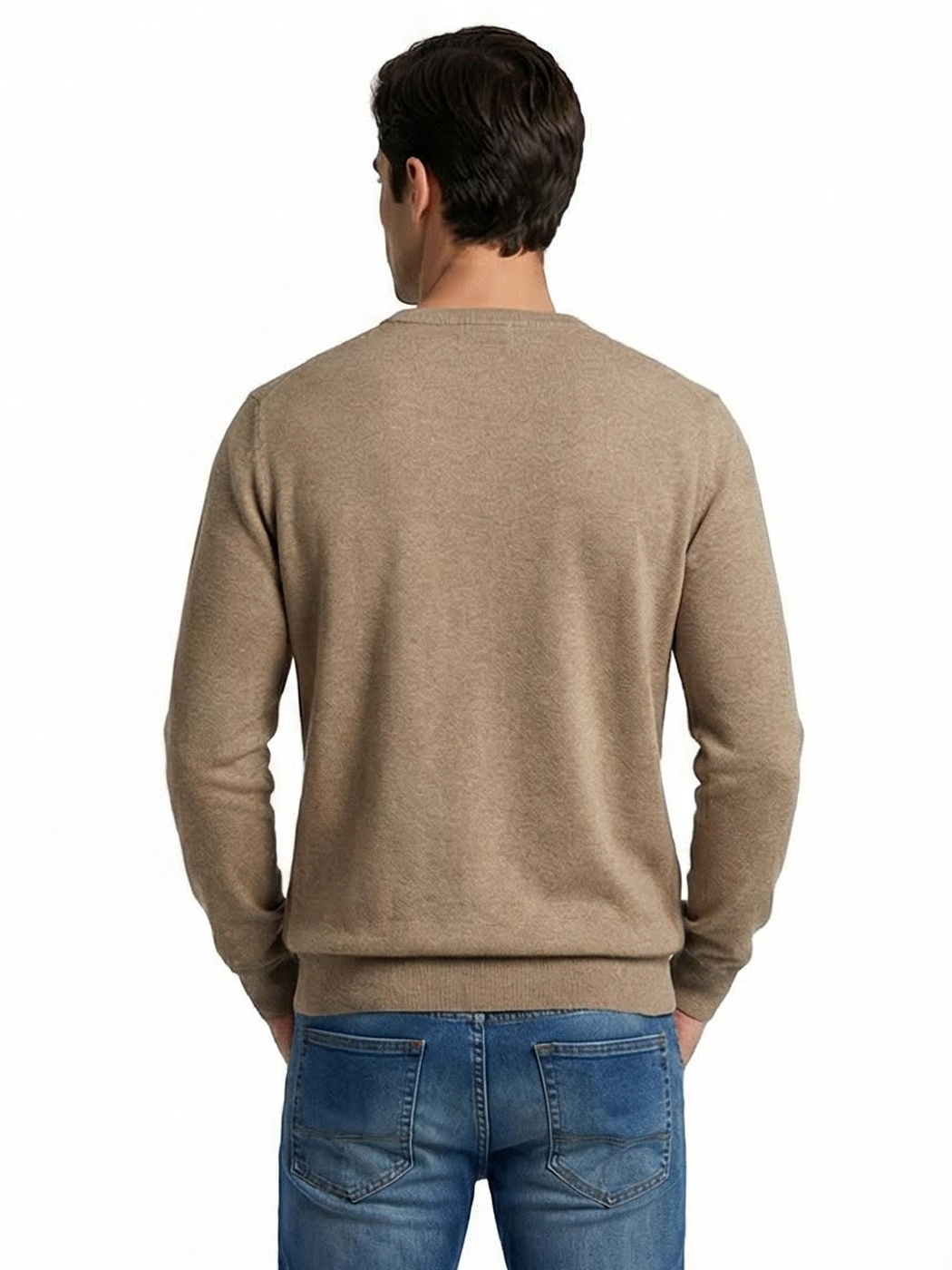 Ανδρικό Πλεκτό Πουλόβερ με Λαιμόκοψη 34-305 Camel