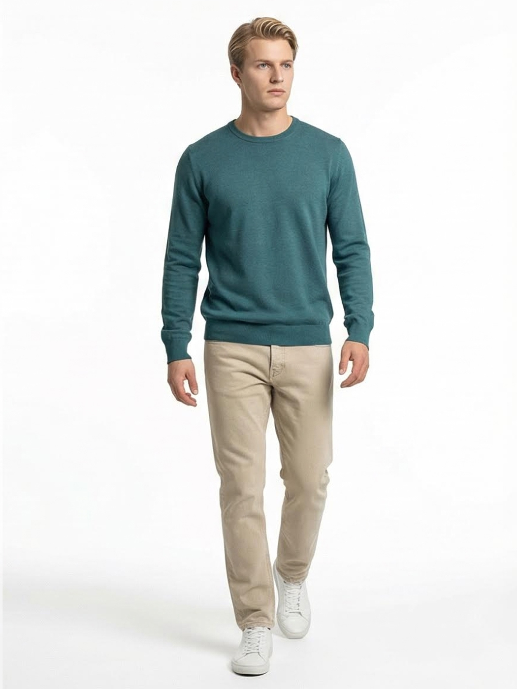 Κομψή και σύγχρονη ανδρική μπλούζα με στρογγυλή λαιμόκοψη, ιδανική για καθημερινές αλλά και πιο προσεγμένες εμφανίσεις. Κατασκευασμένη από απαλό πλεκτό ύφασμα που προσφέρει άνεση και ευχάριστη αίσθηση όλη την ημέρα. Το πετρόλ χρώμα χαρίζει ιδιαίτερο χαρακτήρα και ξεχωρίζει διακριτικά, συνδυαζόμενο εύκολα με σκούρα ή ουδέτερα παντελόνια.