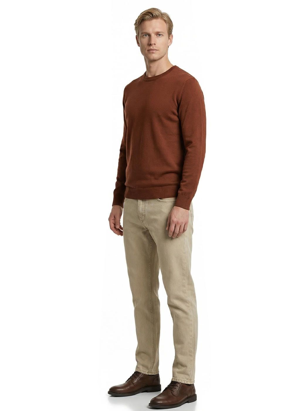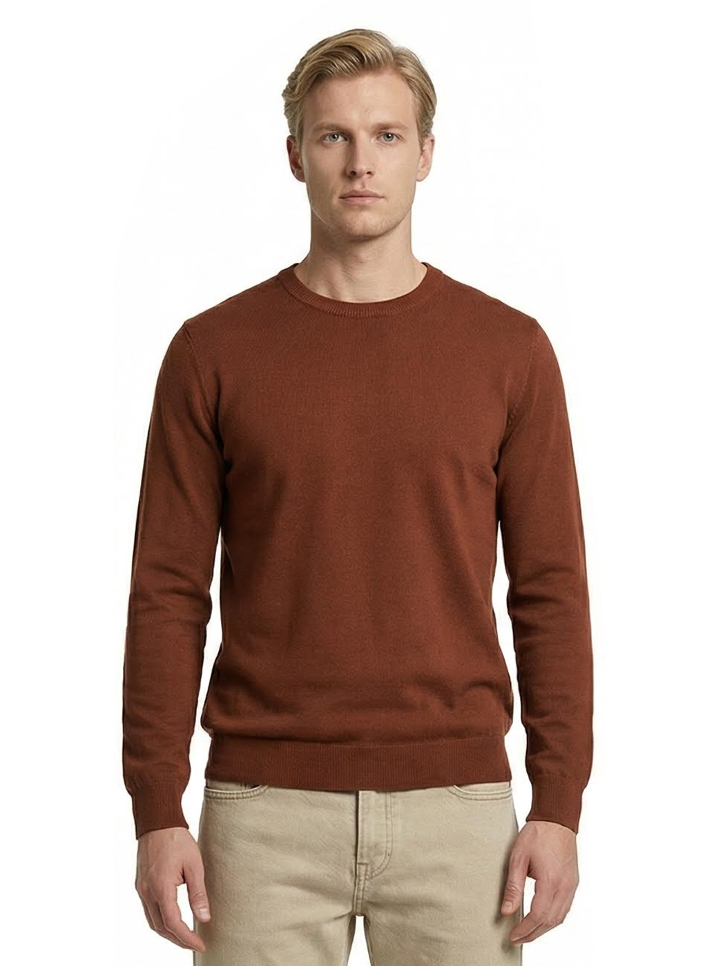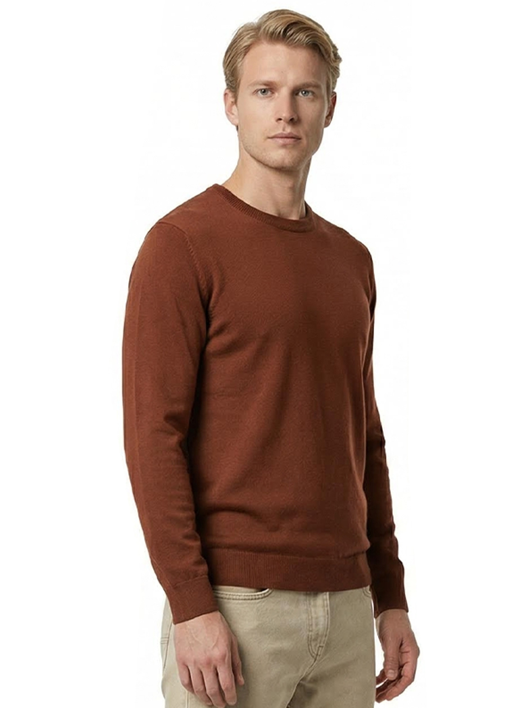 Ανδρικό Πλεκτό Πουλόβερ με Λαιμόκοψη 34-305 Camel