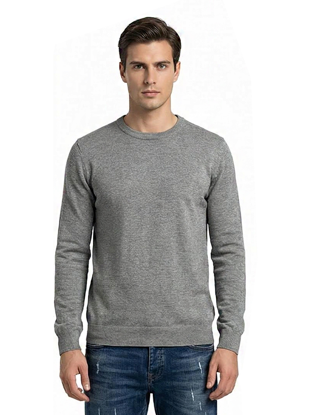 Ανδρικό Πλεκτό Πουλόβερ με Λαιμόκοψη 34-305 Γκρι