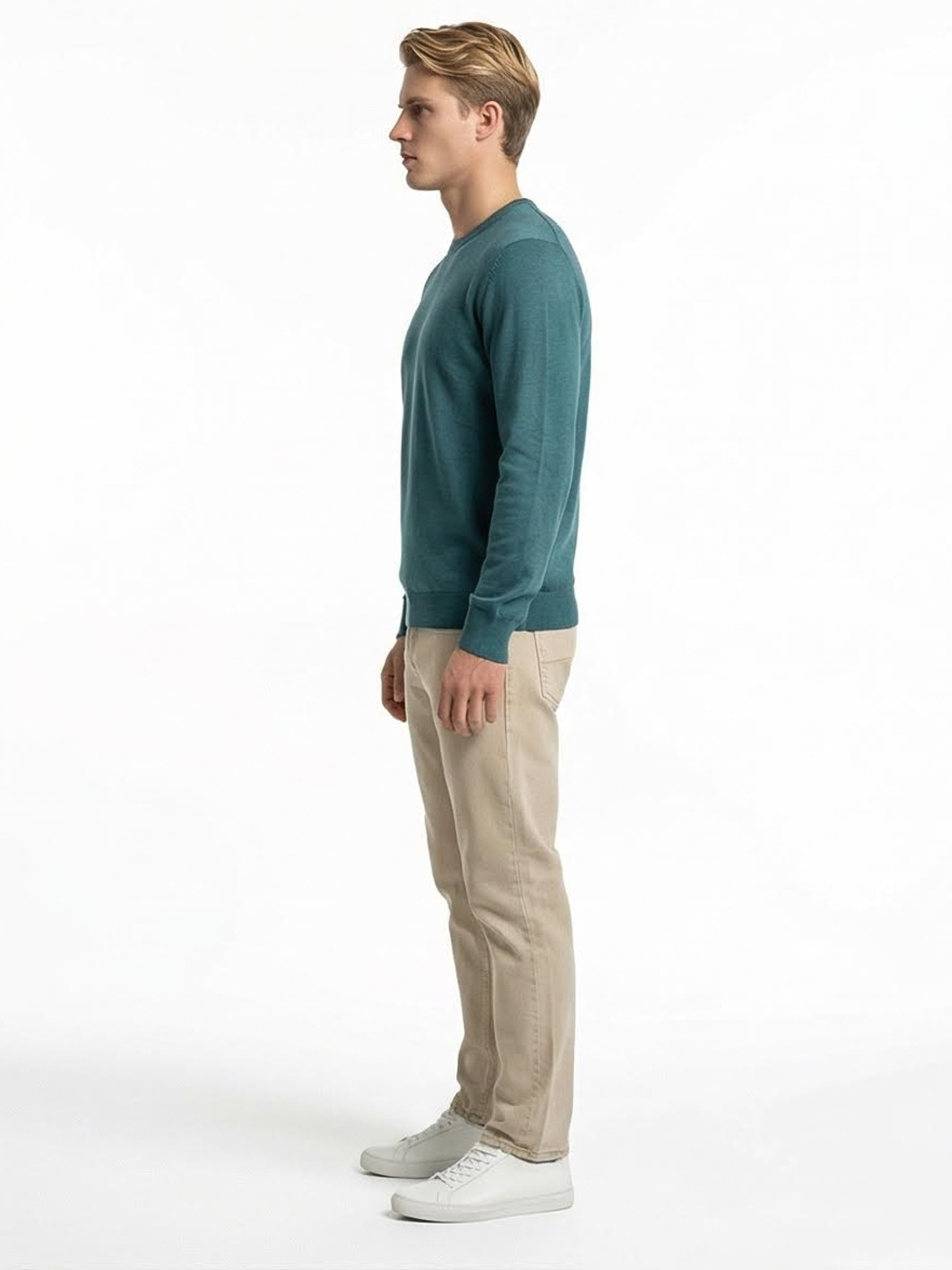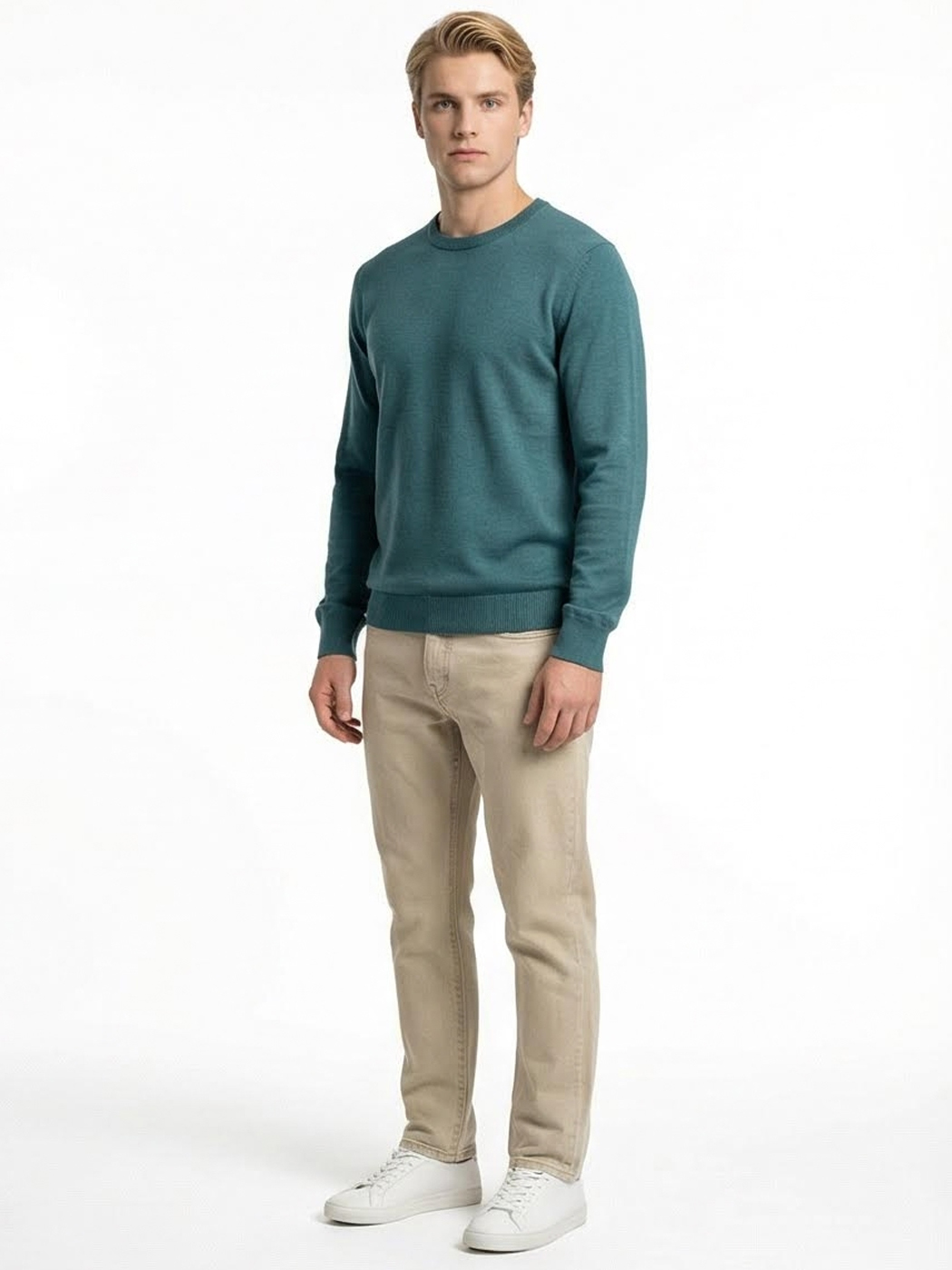 Ανδρικό Πλεκτό Πουλόβερ με Λαιμόκοψη 34-305 Πετρόλ