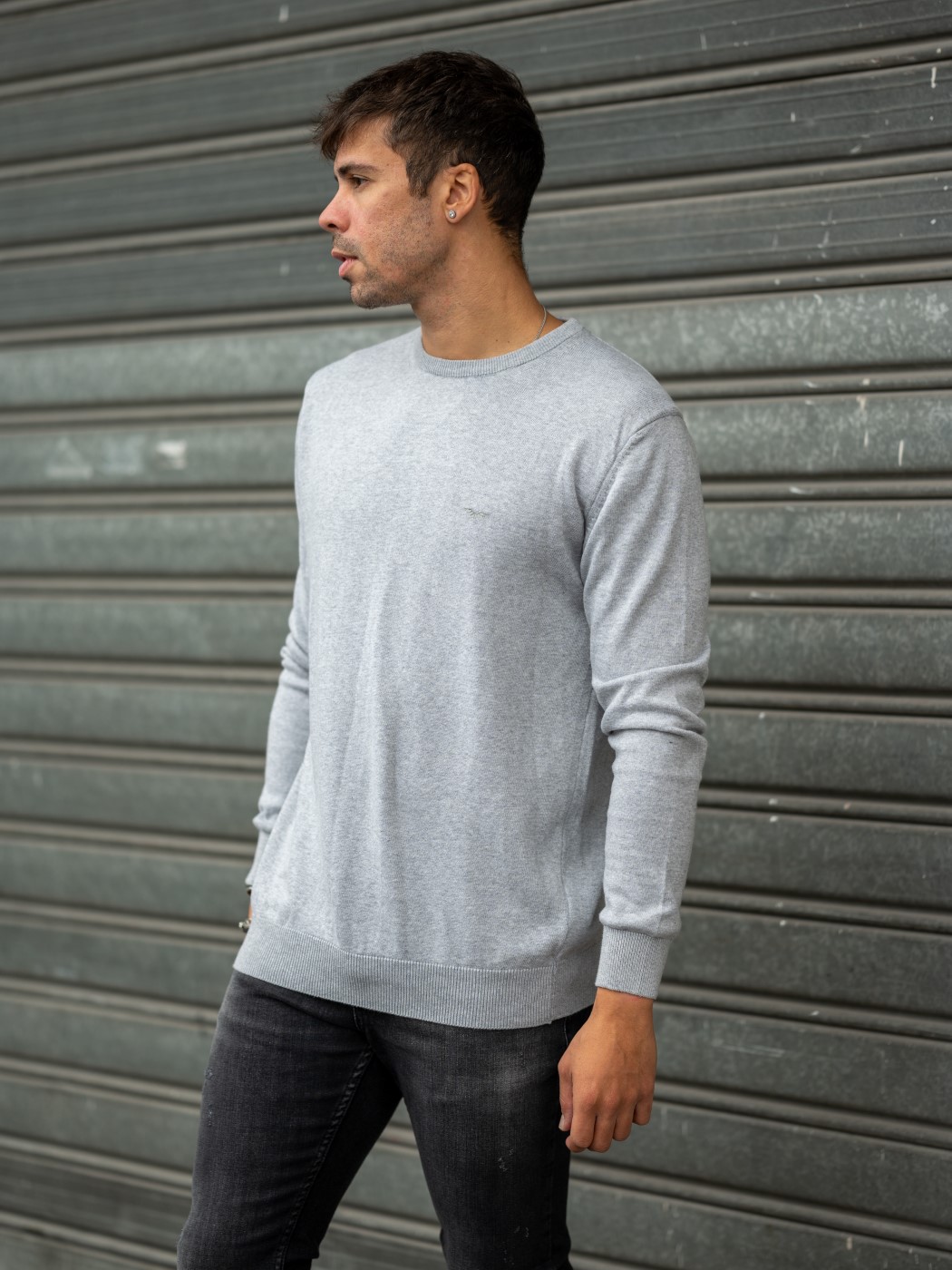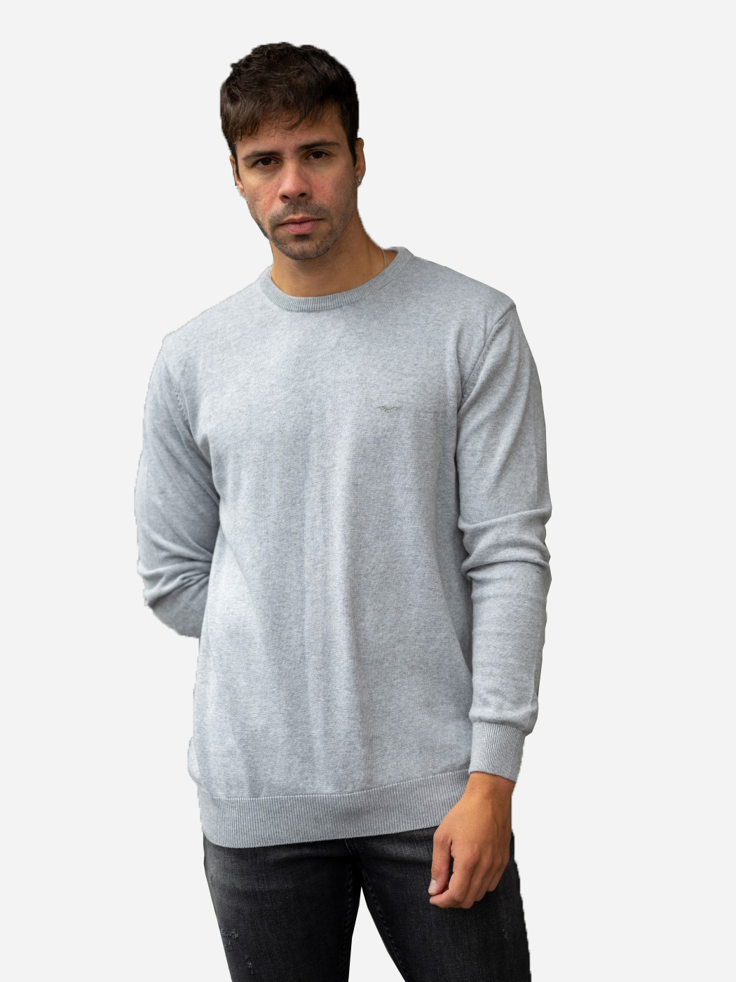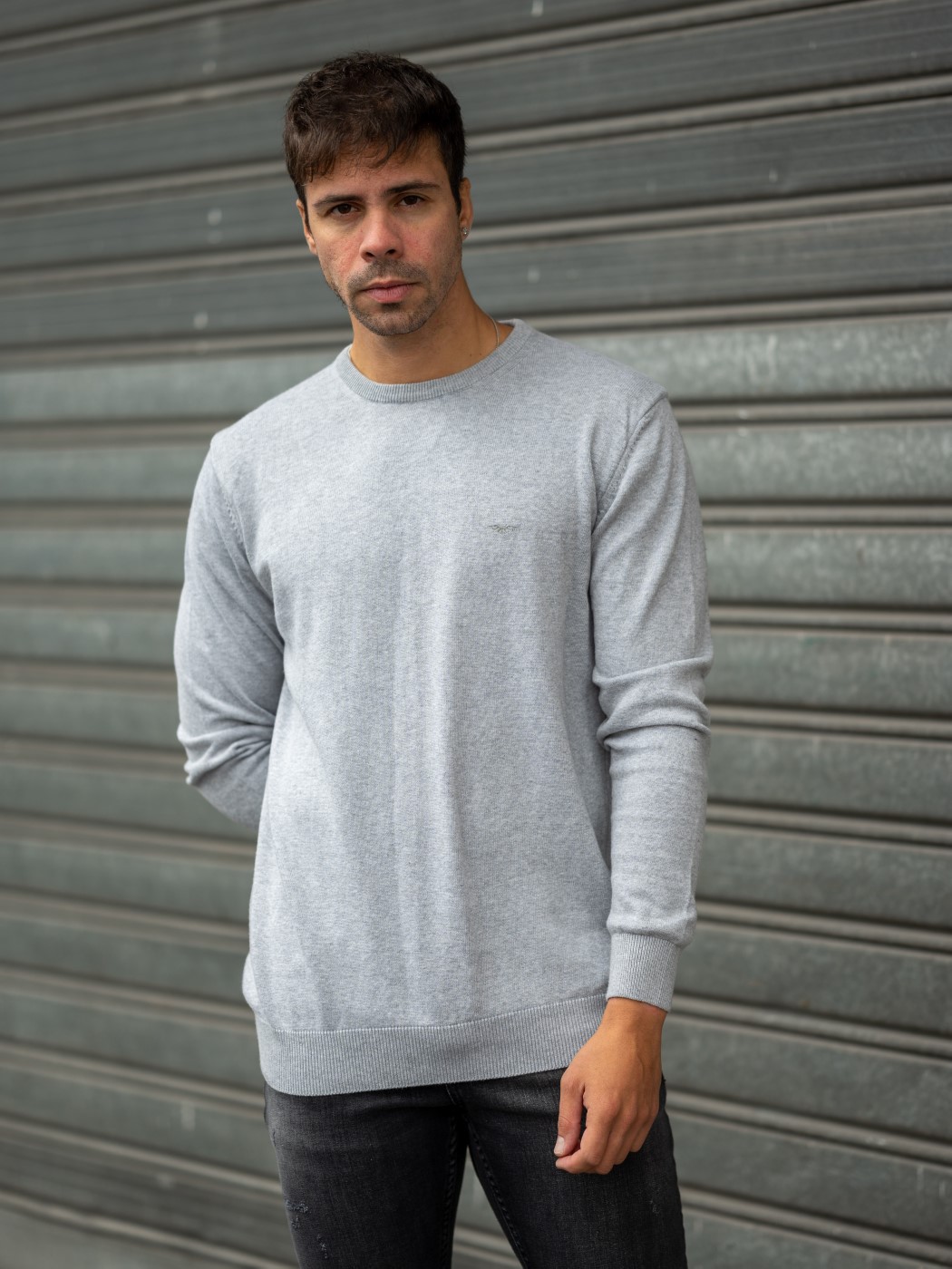 Ανδρική πλεκτή μπλούζα σε γκρι χρώμα και άριστη βαμβακερή ποιότητα.