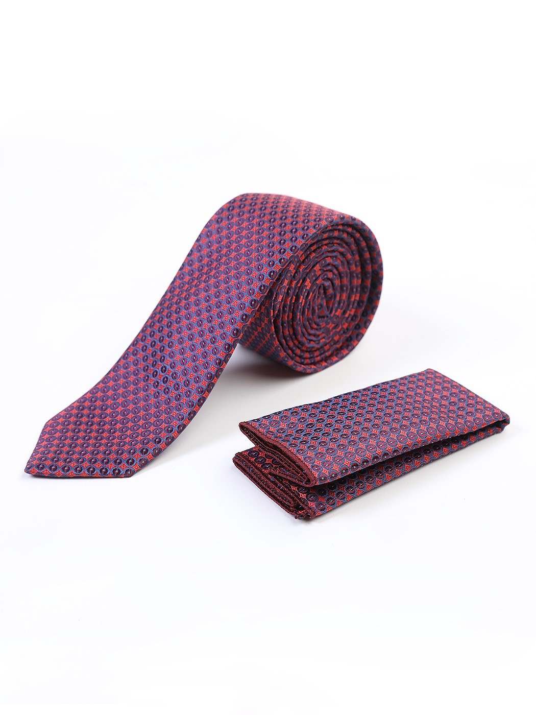 Ανδρική γραβάτα σε εξαιρετική ποιότητα σε κόκκινο/μπλε απόχρωση με σχεδιάκι, και αντίστοιχο μαντηλάκι
