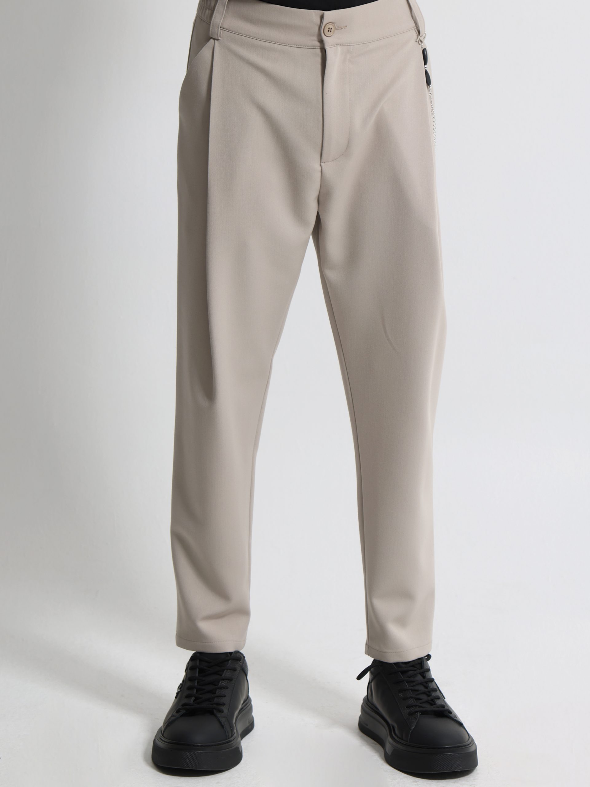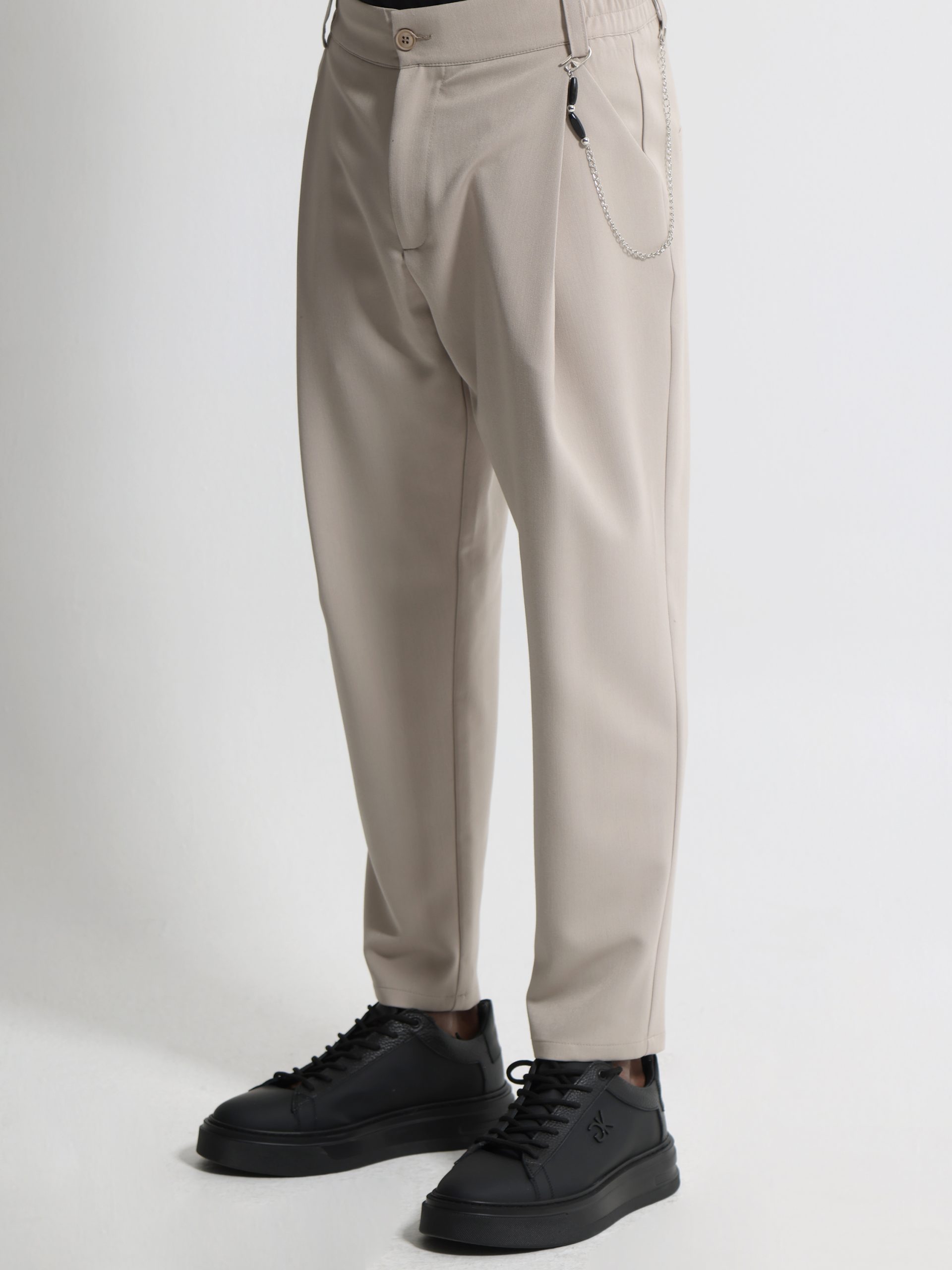 Με έμπνευση από το ιταλικό tailoring αυτό το ανδρικό παντελόνι ξεχωρίζει για την κομψή γραμμή του και τις προσεγμένες λεπτομέρειες του όπως η διακριτική αλυσίδα στη μέση που του χαρίζει μοντέρνο χαρακτήρα και η άνετη εφαρμογή με λάστιχο πίσω που προσφέρει ευκολία στην καθημερινότητα χωρίς να θυσιάζει το στυλ