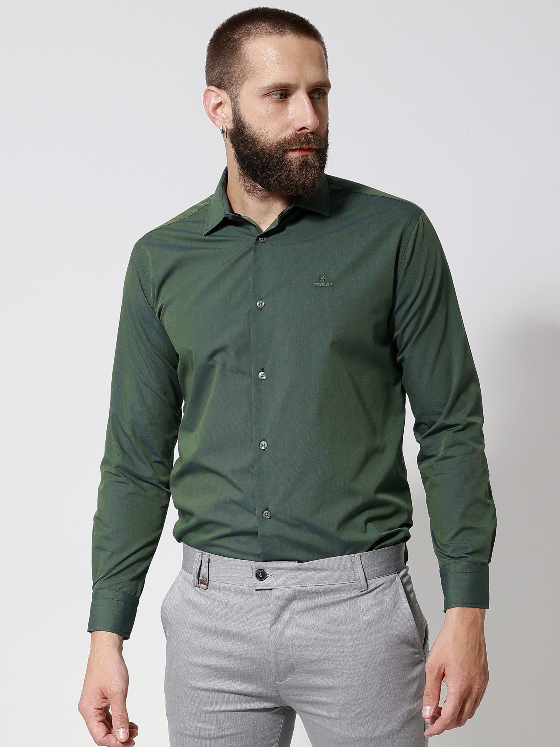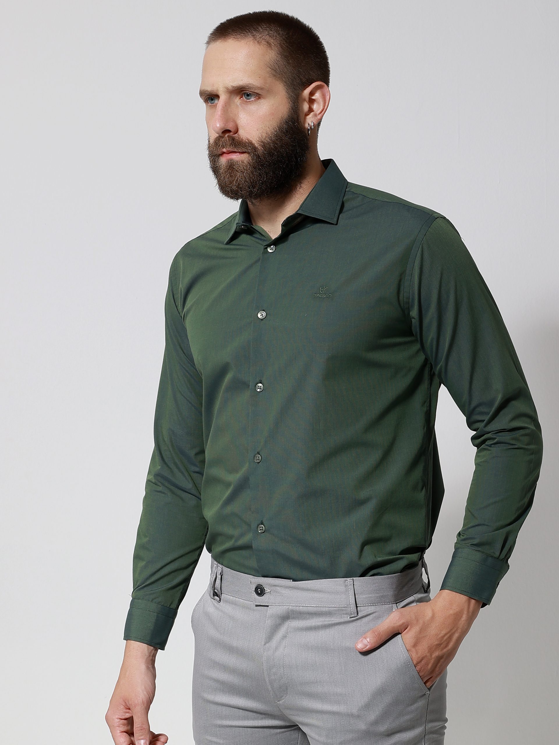 Ανδρικό Πουκάμισο TAILOR-FIT 33-8143 Πράσινο Φαρδιά γραμμή