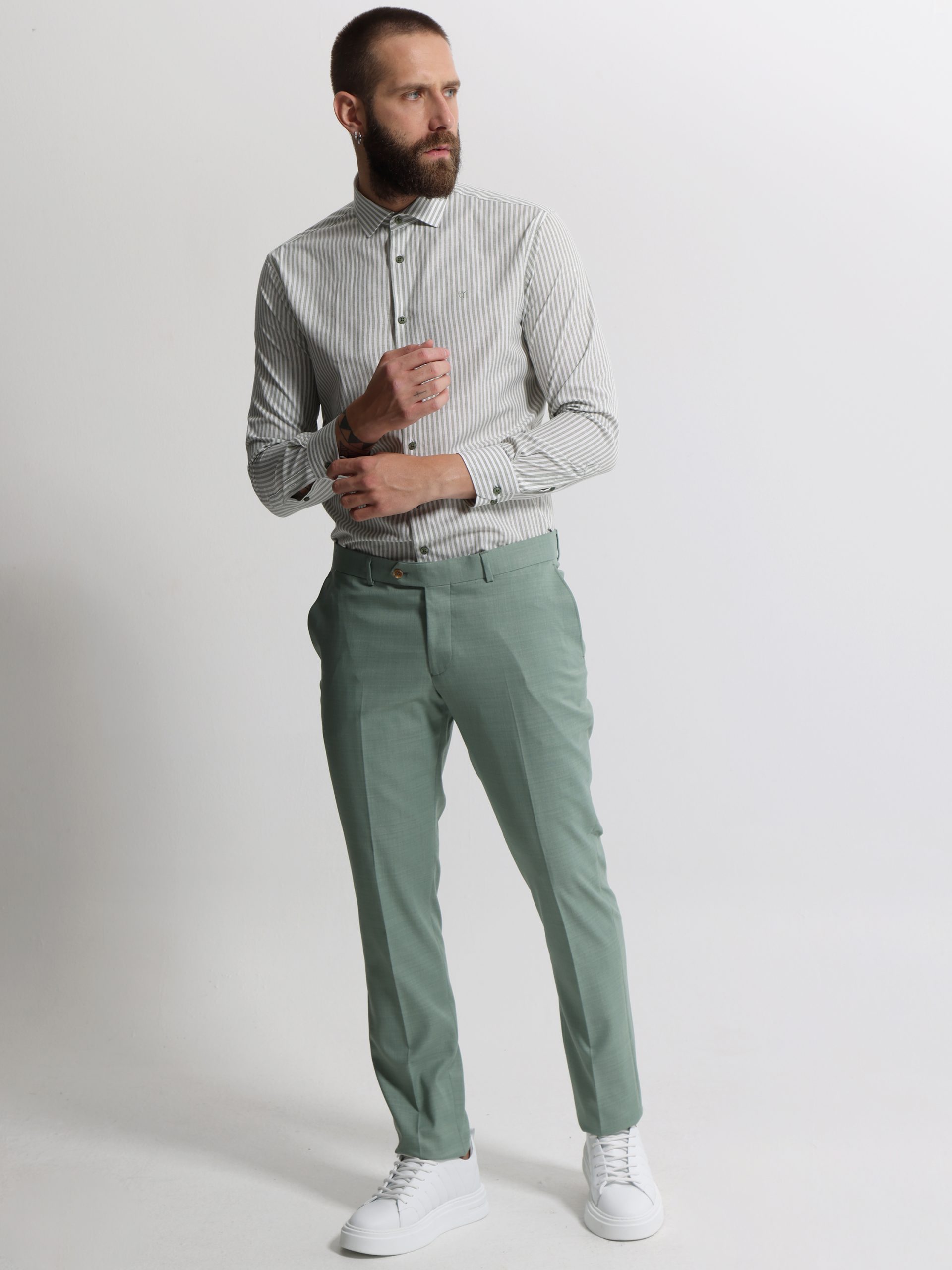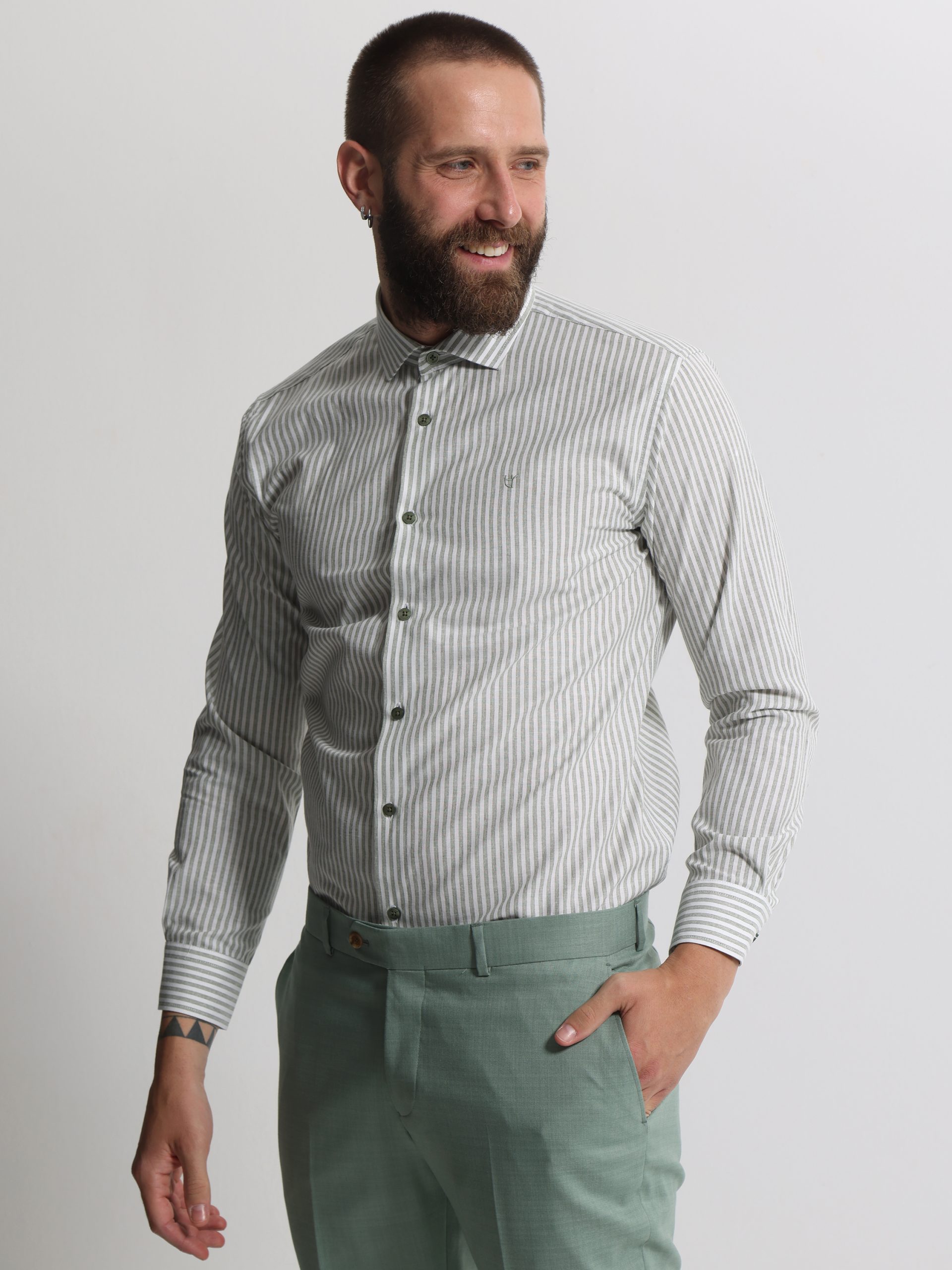 Ριγέ Πουκάμισο TAILOR-FIT Bilbao 33-8177 Πράσινο Φαρδιά γραμμή