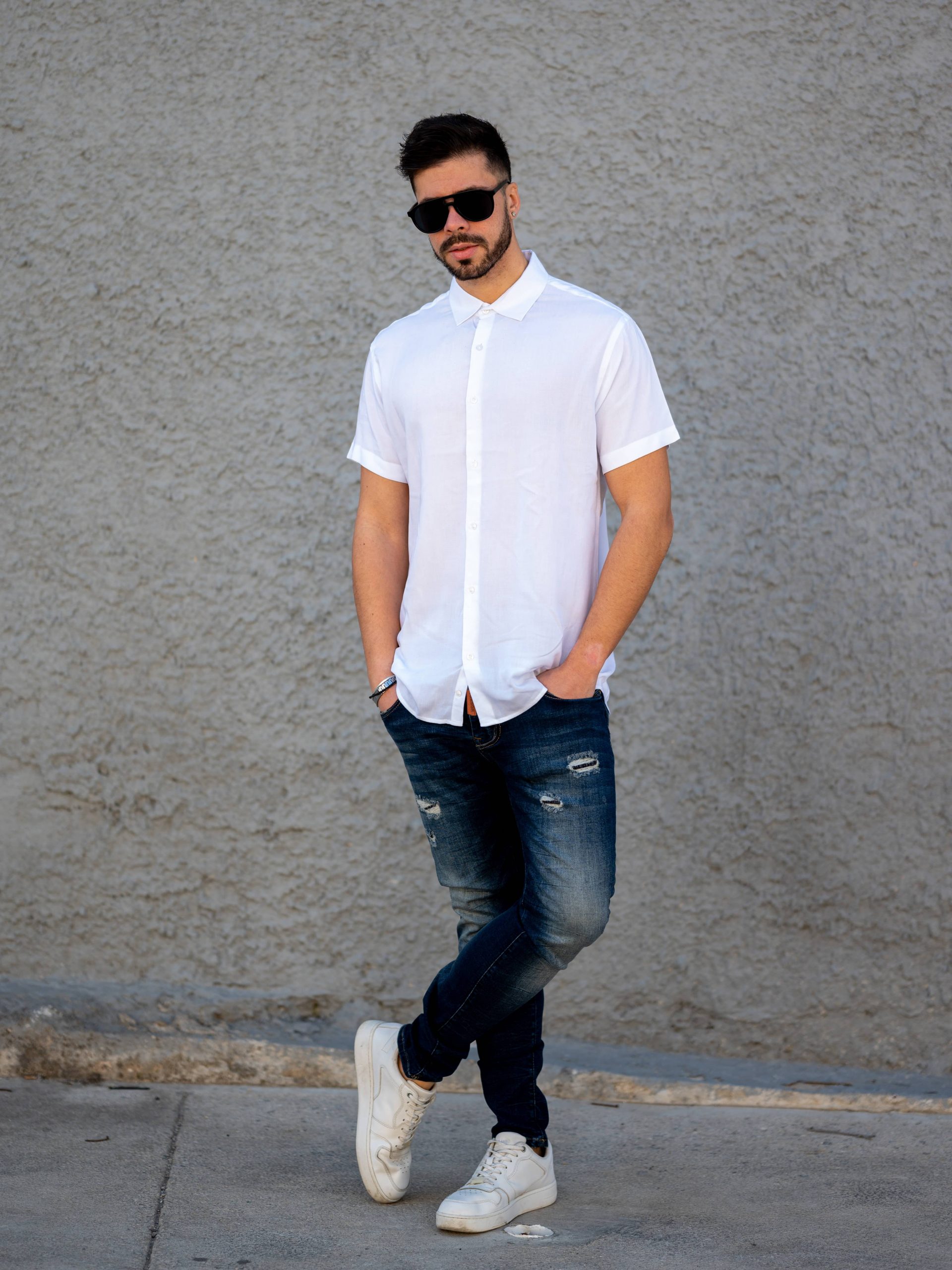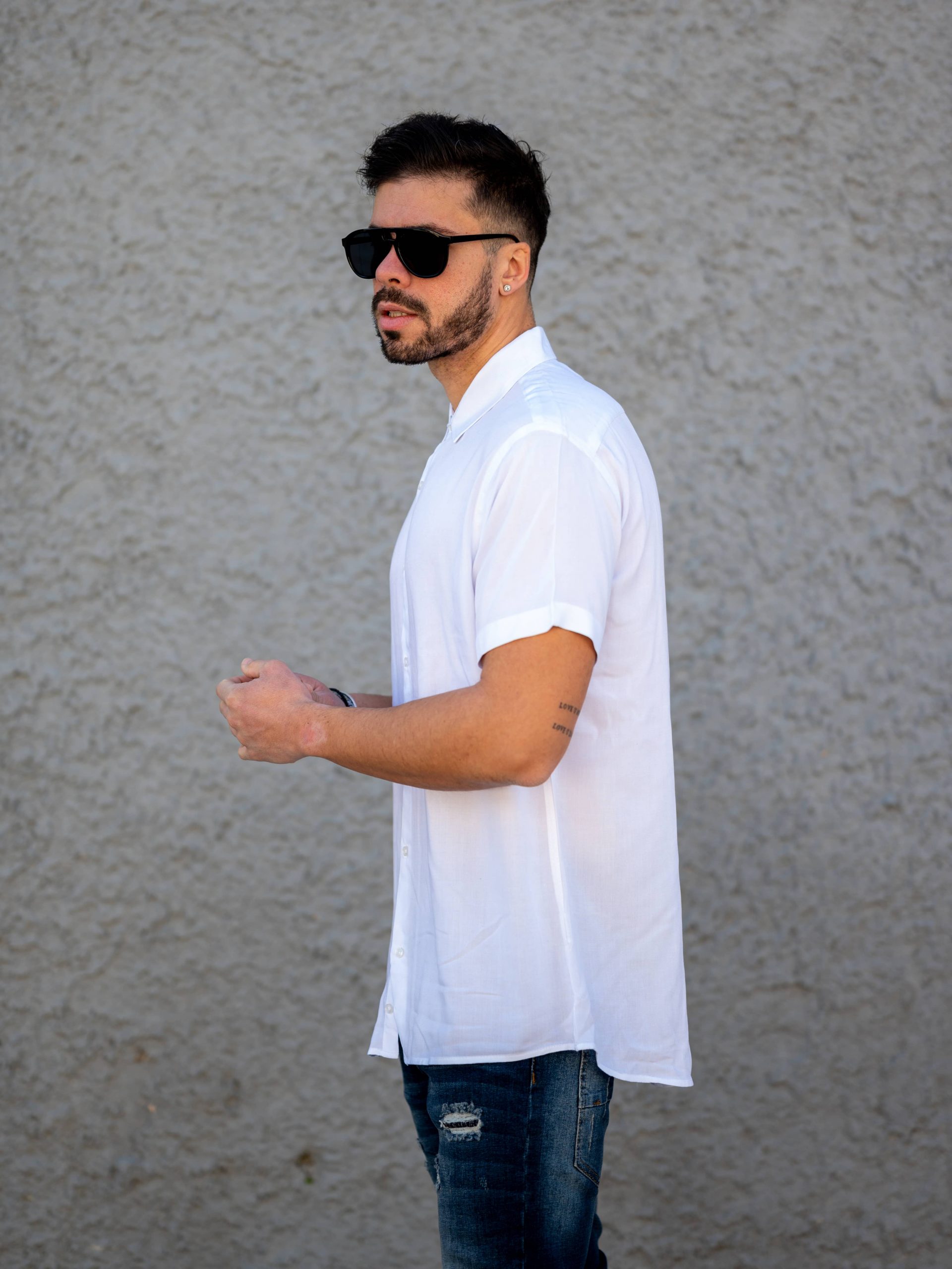 Ανδρικό κοντομάνικο πουκάμισο με γιακά και κλείσιμο με κουμπιά. Η γραμμή του είναι slim fit.