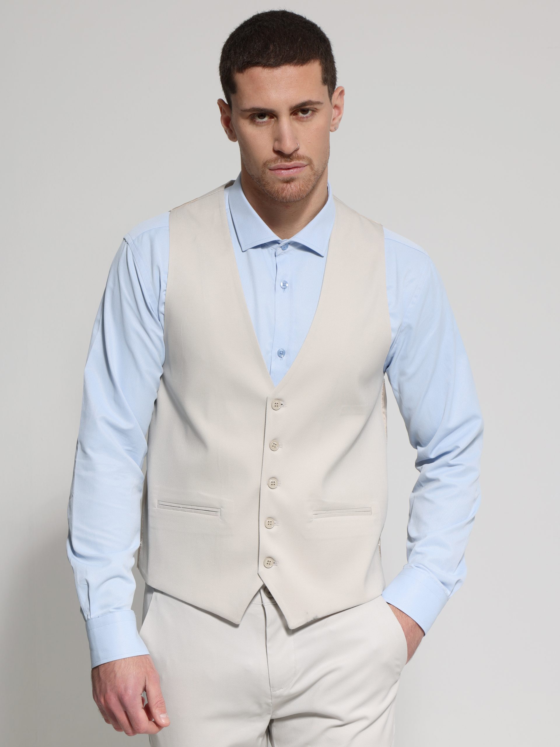 Λινή Πουκαμίσα Μακρύ Μανίκι Slim-fit SANTINO 33-7510 Μπεζ