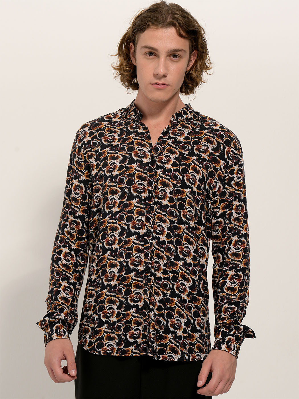 Πουκάμισο με Μάο Γιακά & Σχέδιο Simon 33-7404 Μαύρο/Καφέ Slim-fit