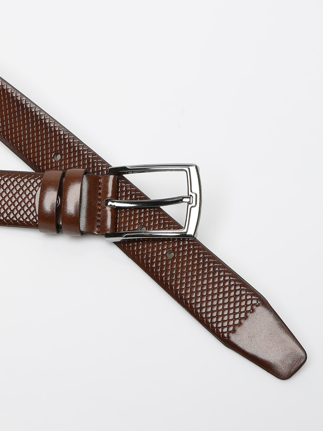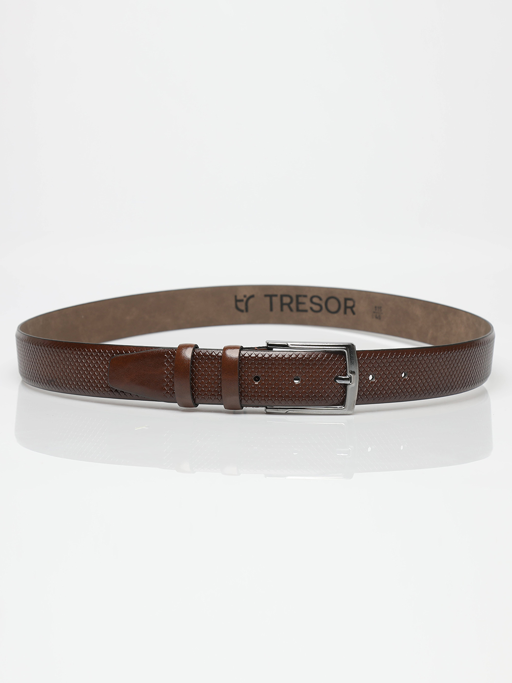 Ανδρική Ζώνη Με Ανάγλυφο Σχέδιο 33-6026 Καφέ