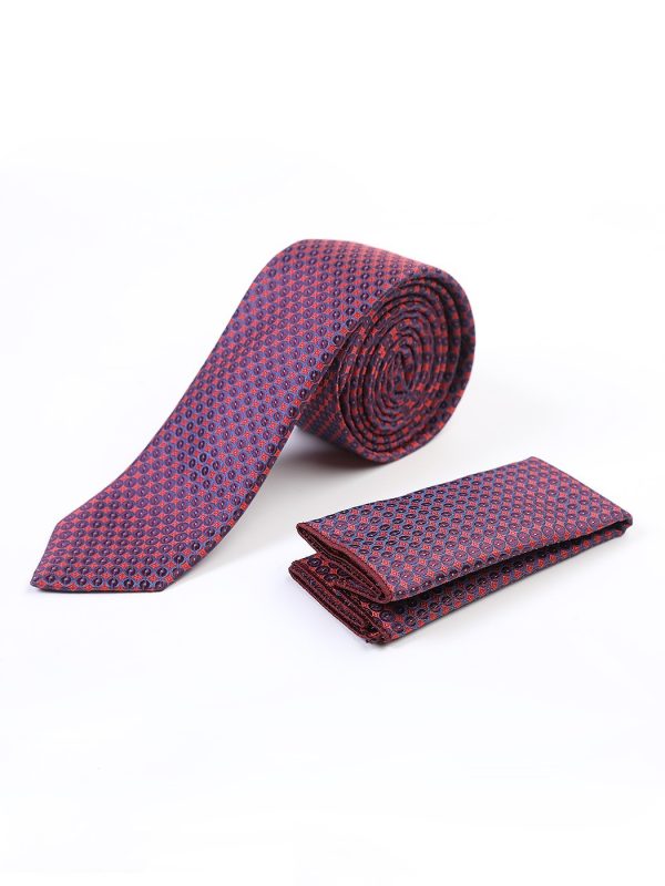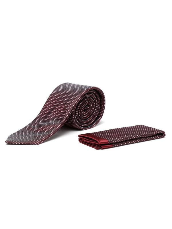 Ανδρική γραβάτα σε μπορντώ με σχεδιάκια και μαντηλάκι 220-66