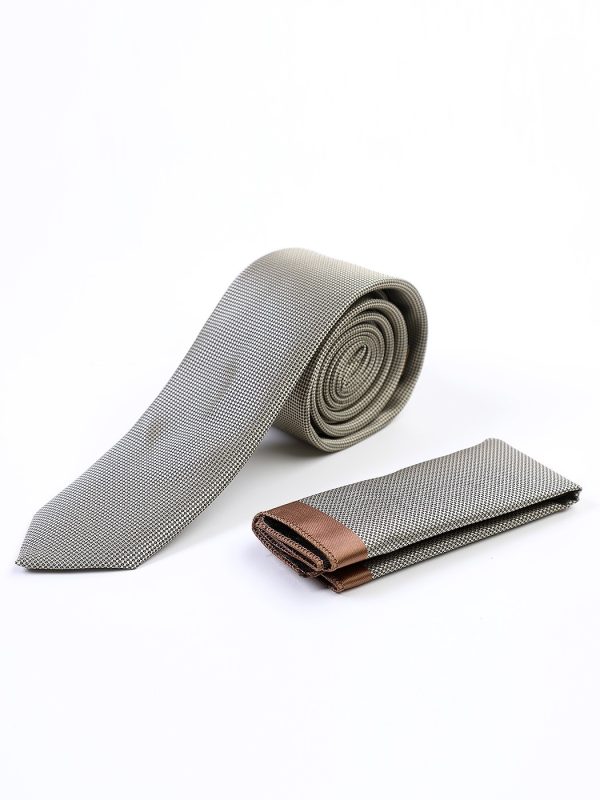 Ανδρική γραβάτα με μαντηλάκι σε λαδί 220-91