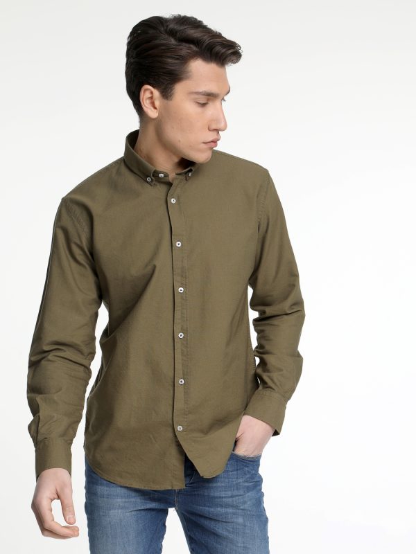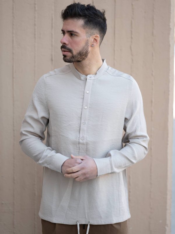 Πουκάμισο Μακρυμάνικο Με Γιακά Μάο Μπεζ