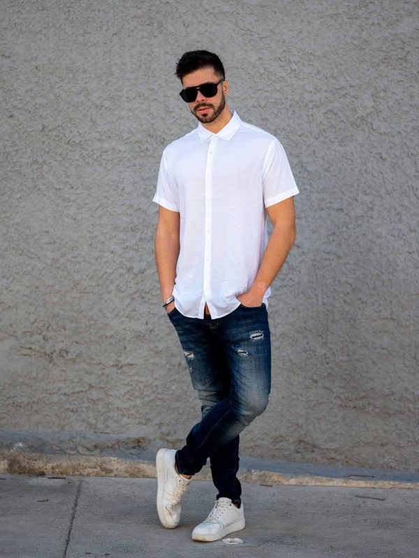 Πουκάμισο Λευκό SLIM FIT Με Κοντό Μανίκι Λευκό