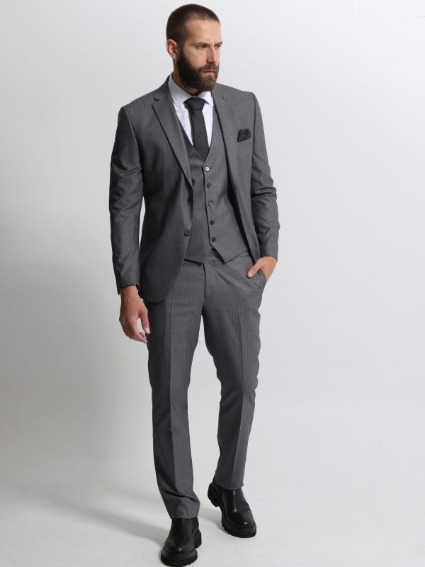 Ανδρικό Ριγέ Κοστούμι Με Γιλέκο ANTONIO 2027 Grey