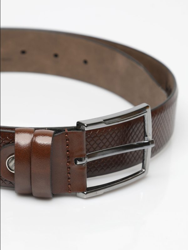 Ανδρική Ζώνη Με Ανάγλυφο Σχέδιο 33-6026 Καφέ