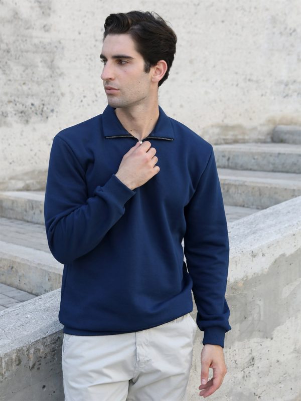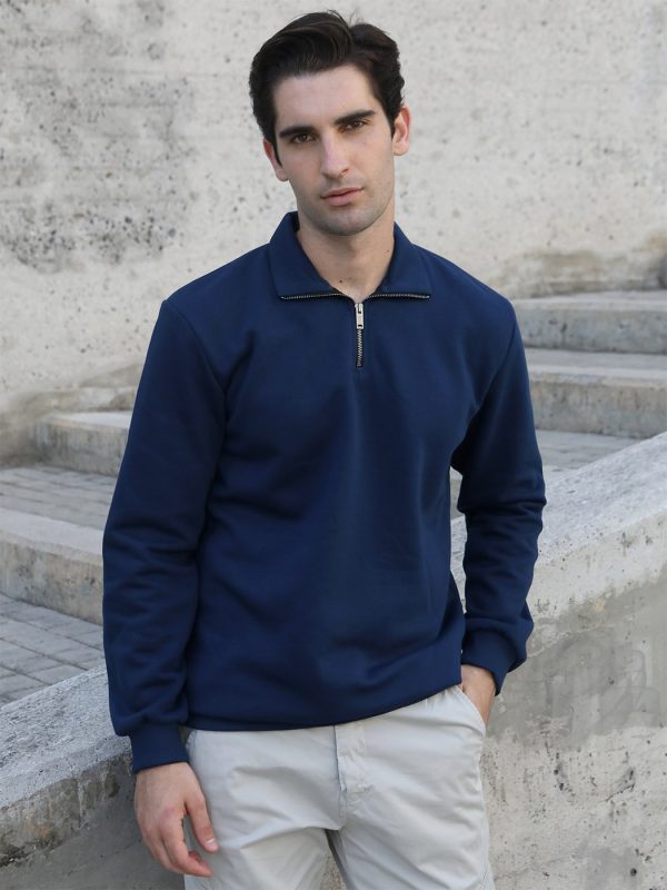 Μπλούζα Φούτερ Με Φερμουάρ Στο Γιακά 10-649 Μπλε