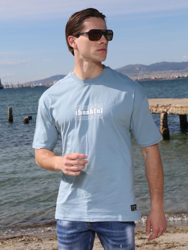 Ανδρικό Βαμβακερό Oversized Κοντομάνικο T-shirt 10-680 Σιελ