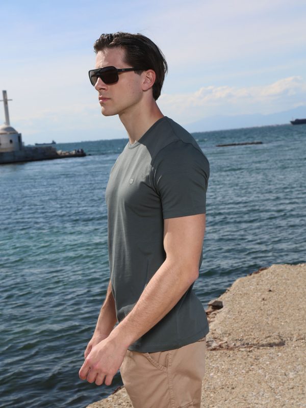 Ανδρικό Βαμβακερό Κοντομάνικο T-shirt 10-704 Χακί
