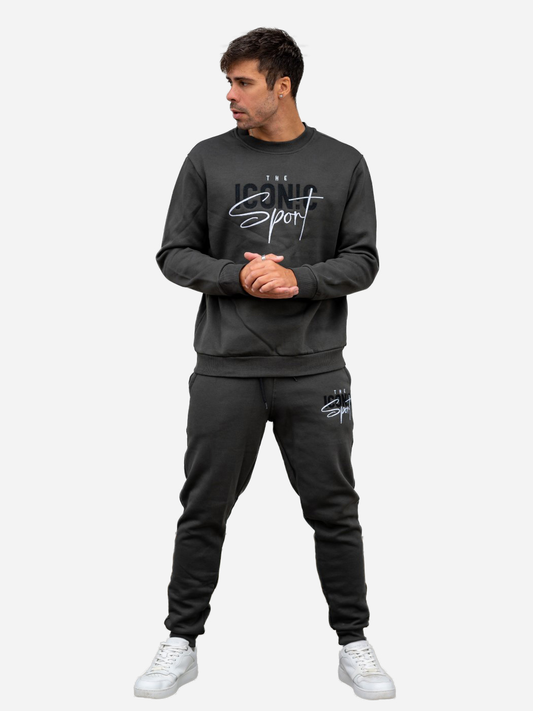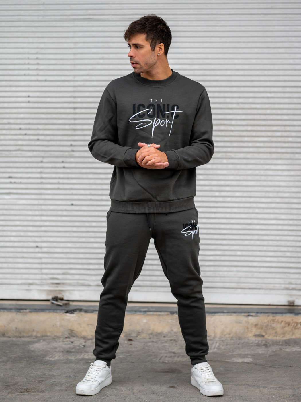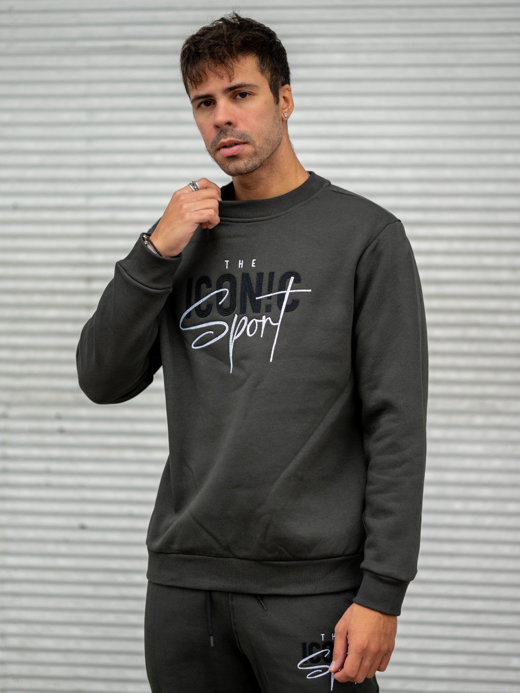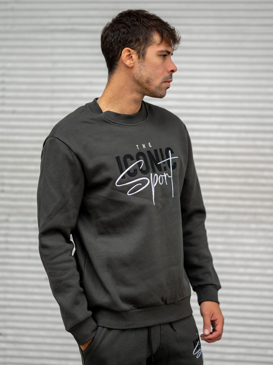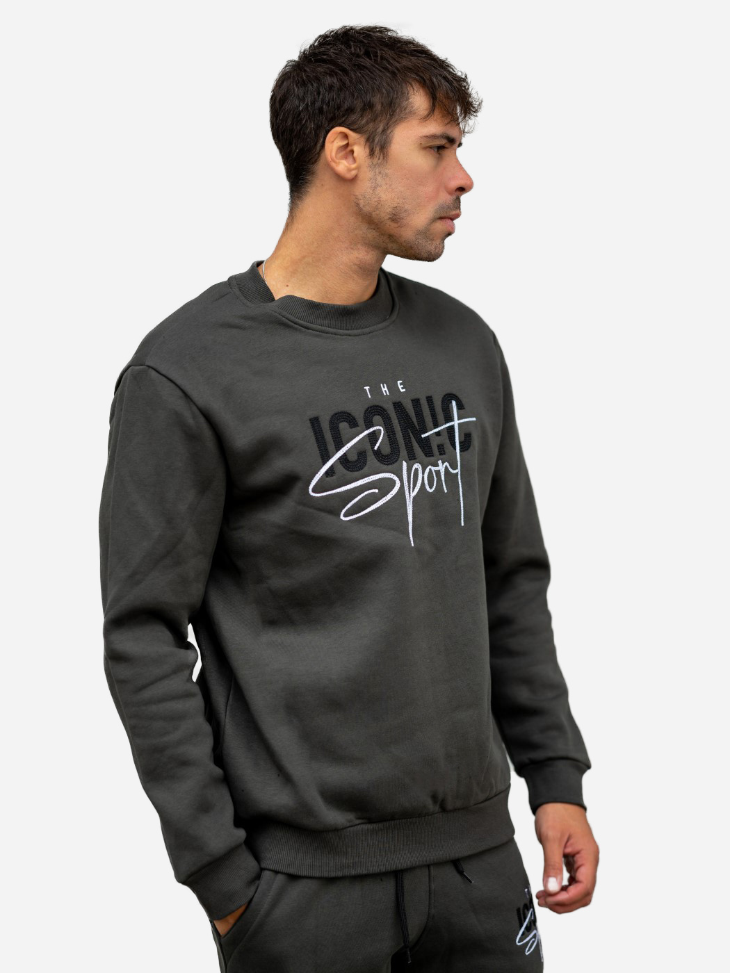 Ανδρική μπλούζα φούτερ σε χακί χρώμα με κέντημα ICON!C Sports.