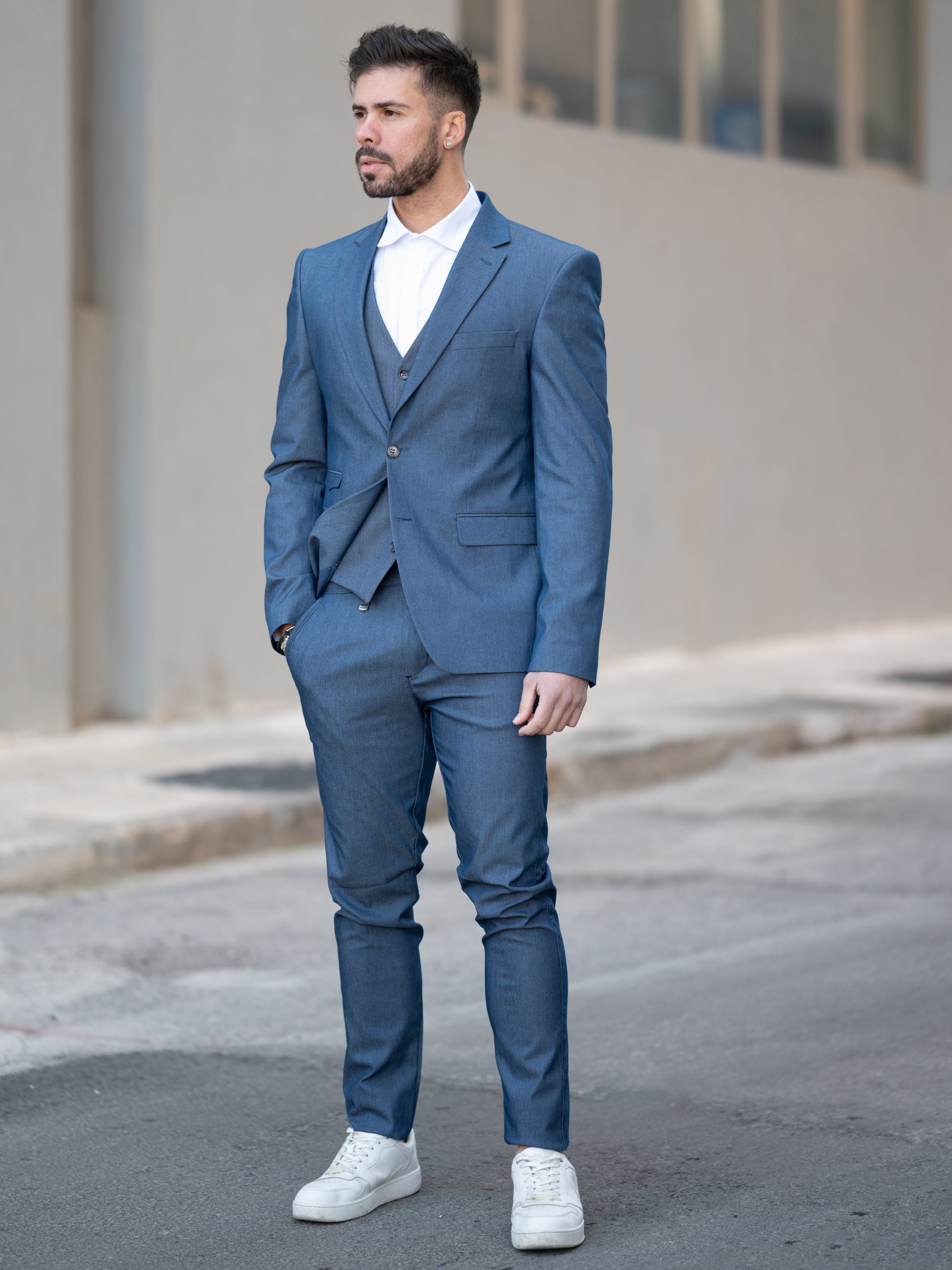 Ανδρικό γιλέκο LOUIS σε ιδιαίτερο μπλε χρώμα με ελαστικότητα από εξαιρετικής ποιότητας ύφασμα βαμβακερό. Εσωτερική επένδυση και κουμπάκια στο μπροστά μέρος.