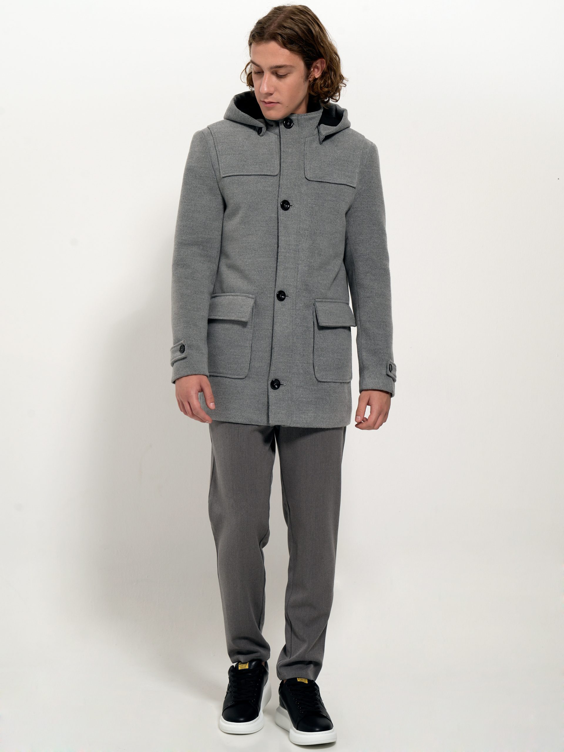 Ανδρικό Παλτό Με Κουκούλα VIVIANO 2564 γκρι