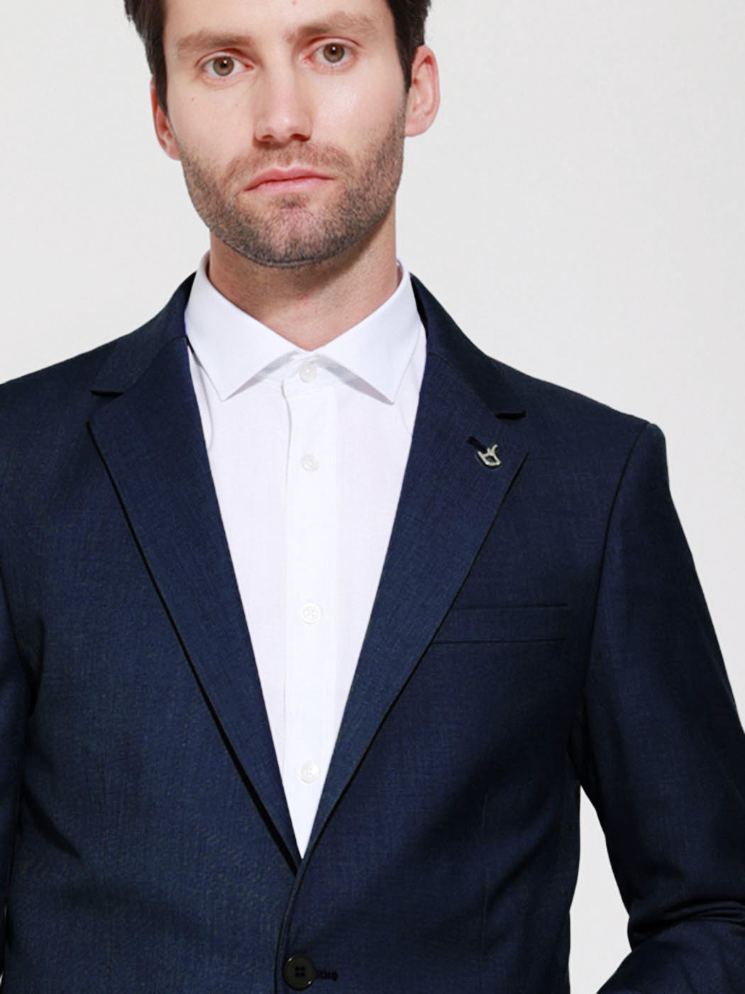 Από εξαιρετικής ποιότητας υλικά. Το σακάκι διαθέτει δύο τσέπες στα πλάγια με καπάκι και μία μικρή κάτω από το πέτο, κλείνει με 2 κουμπιά. Το παντελόνι διαθέτει δύο τσέπες στο πλάι και δύο στο πίσω μέρος, κλείνει με κρυφό φερμουάρ και κουμπί.