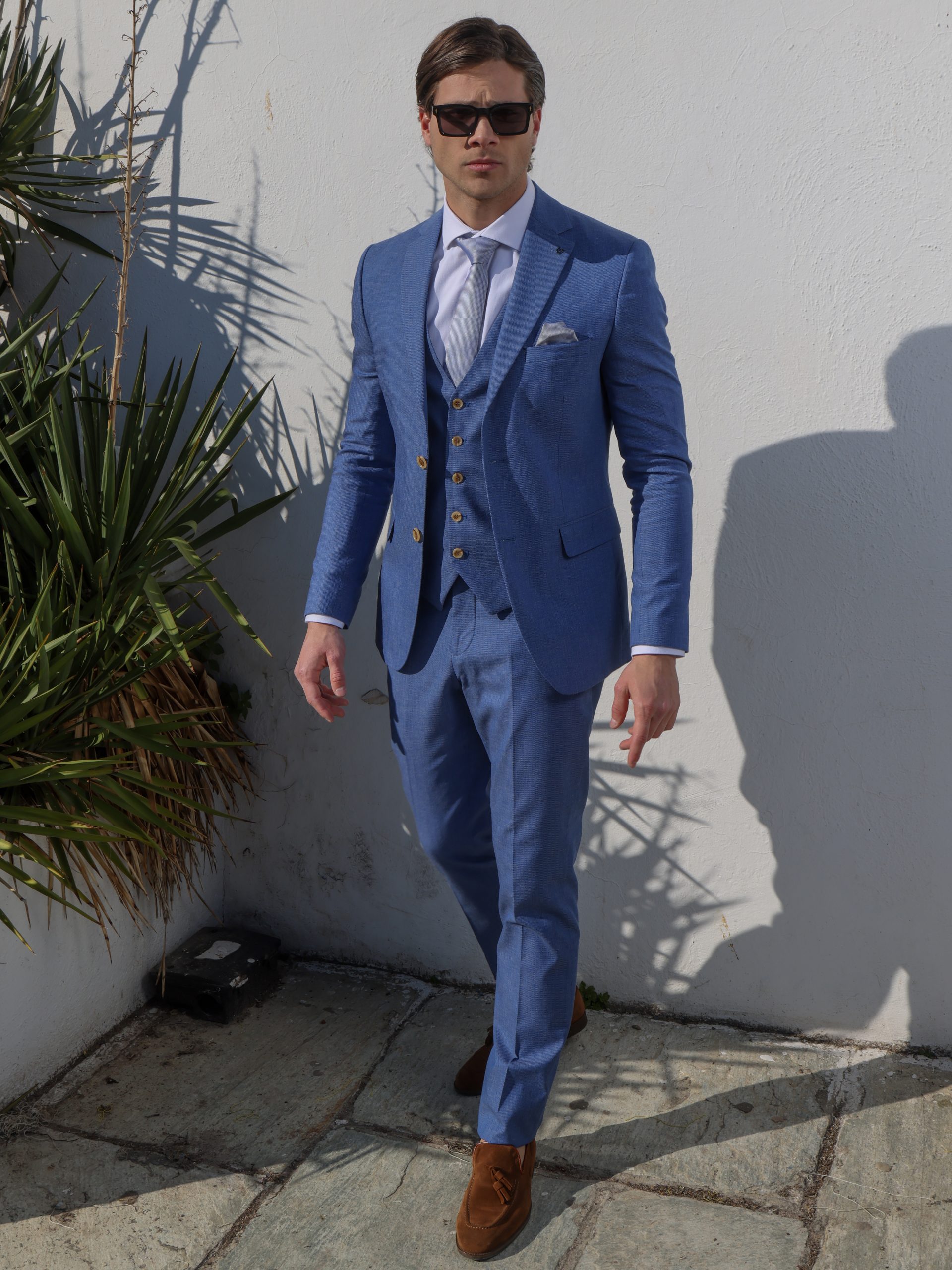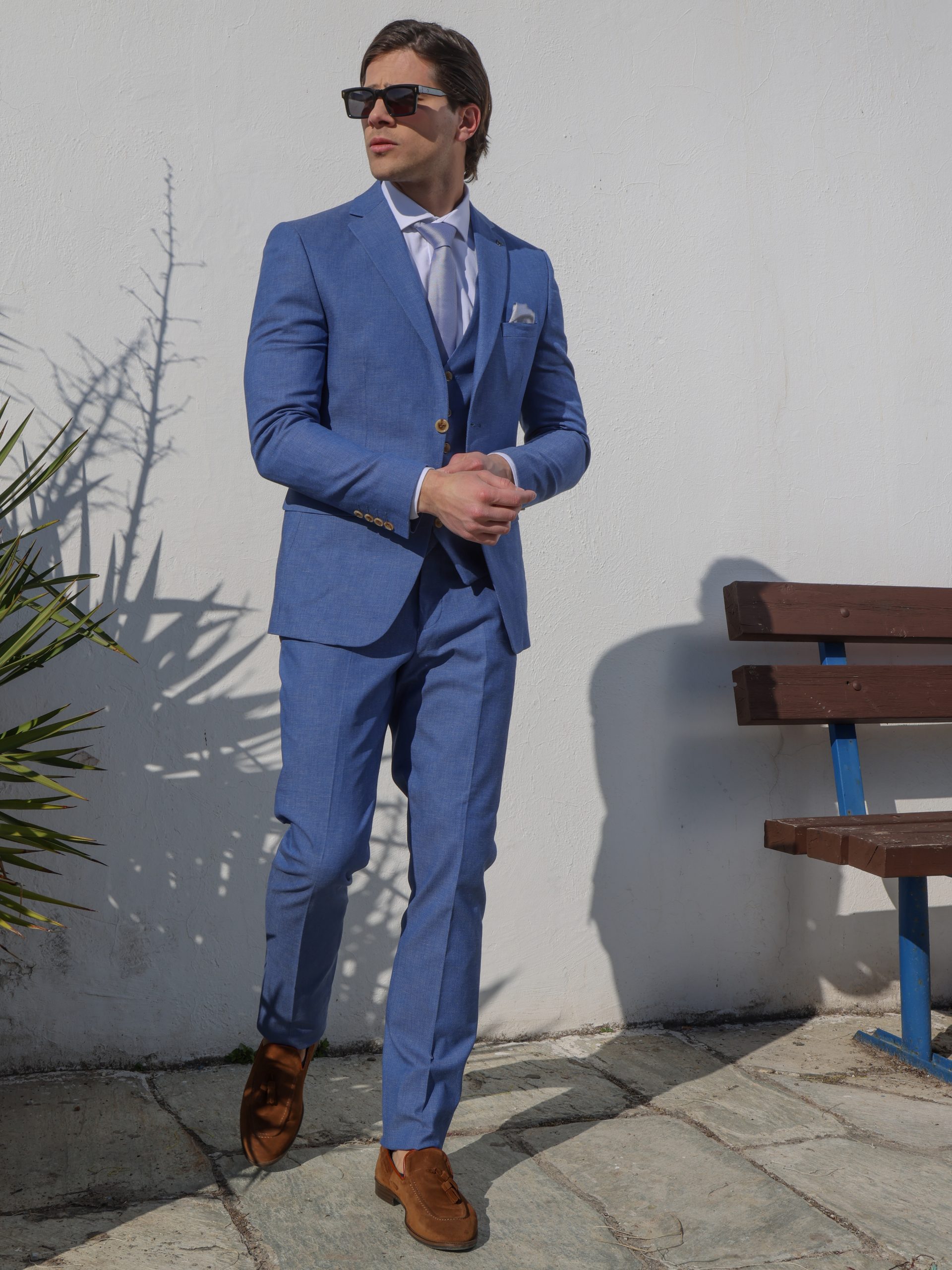 Αυτό το ανδρικό κοστούμι με γιλέκο είναι η ιδανική επιλογή για κάθε επίσημη περίσταση. Αποτελείται από παντελόνι, γιλέκο και σακάκι, όλα φτιαγμένα από ποιοτικά υφάσματα και εξαιρετικά υλικά που προσφέρουν άνεση και στυλ. Το παντελόνι διαθέτει δύο τσέπες στα πλάγια και κλείνει με φερμουάρ και κουμπί, εξασφαλίζοντας τέλεια εφαρμογή.