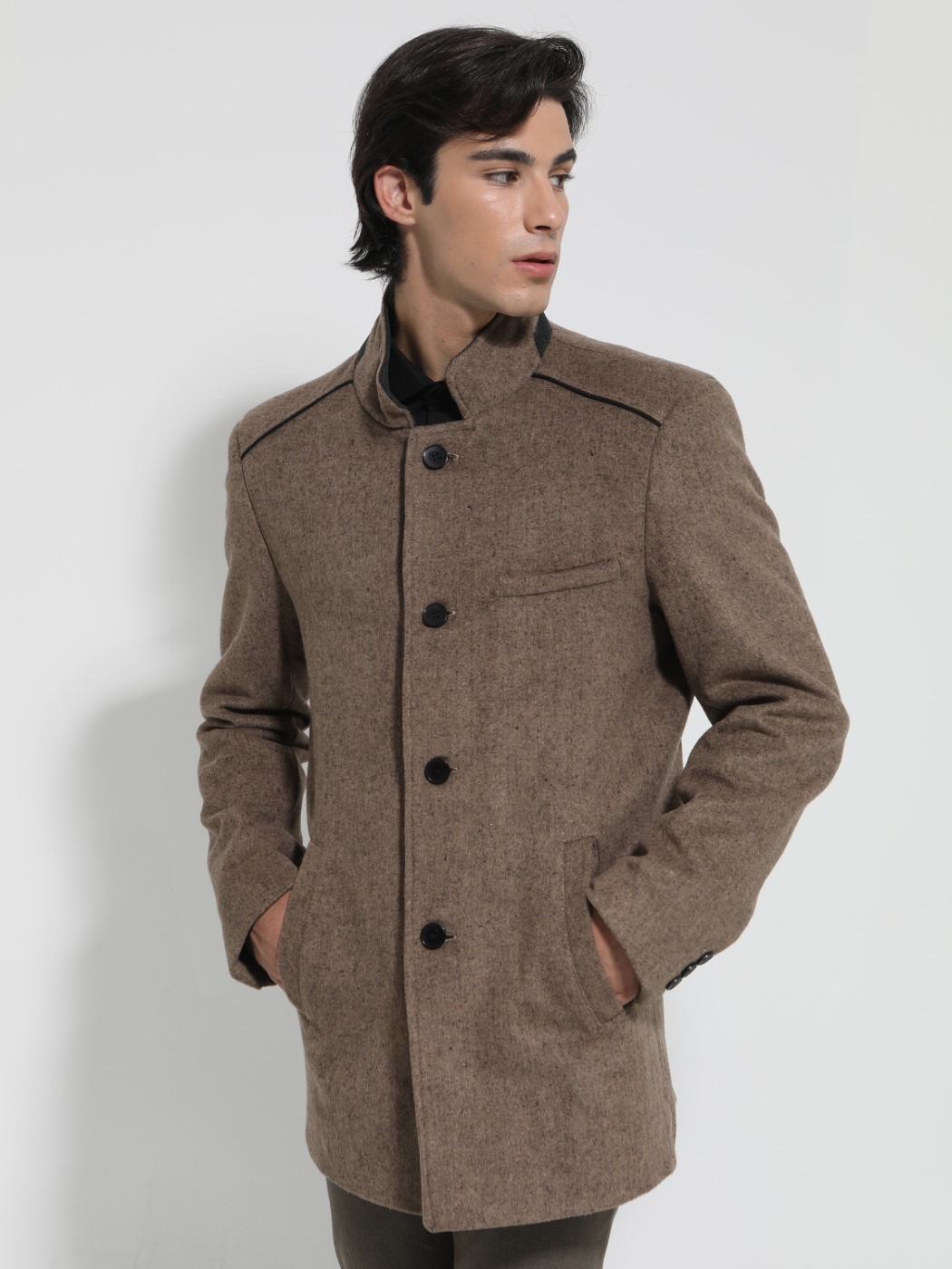 Ανδρικό παλτό σε camel χρώμα με κουμπιά. Συνδυάζεται με jean για casual ντύσιμο και με υφασμάτινα παντελόνια για πιο καλή περίσταση.