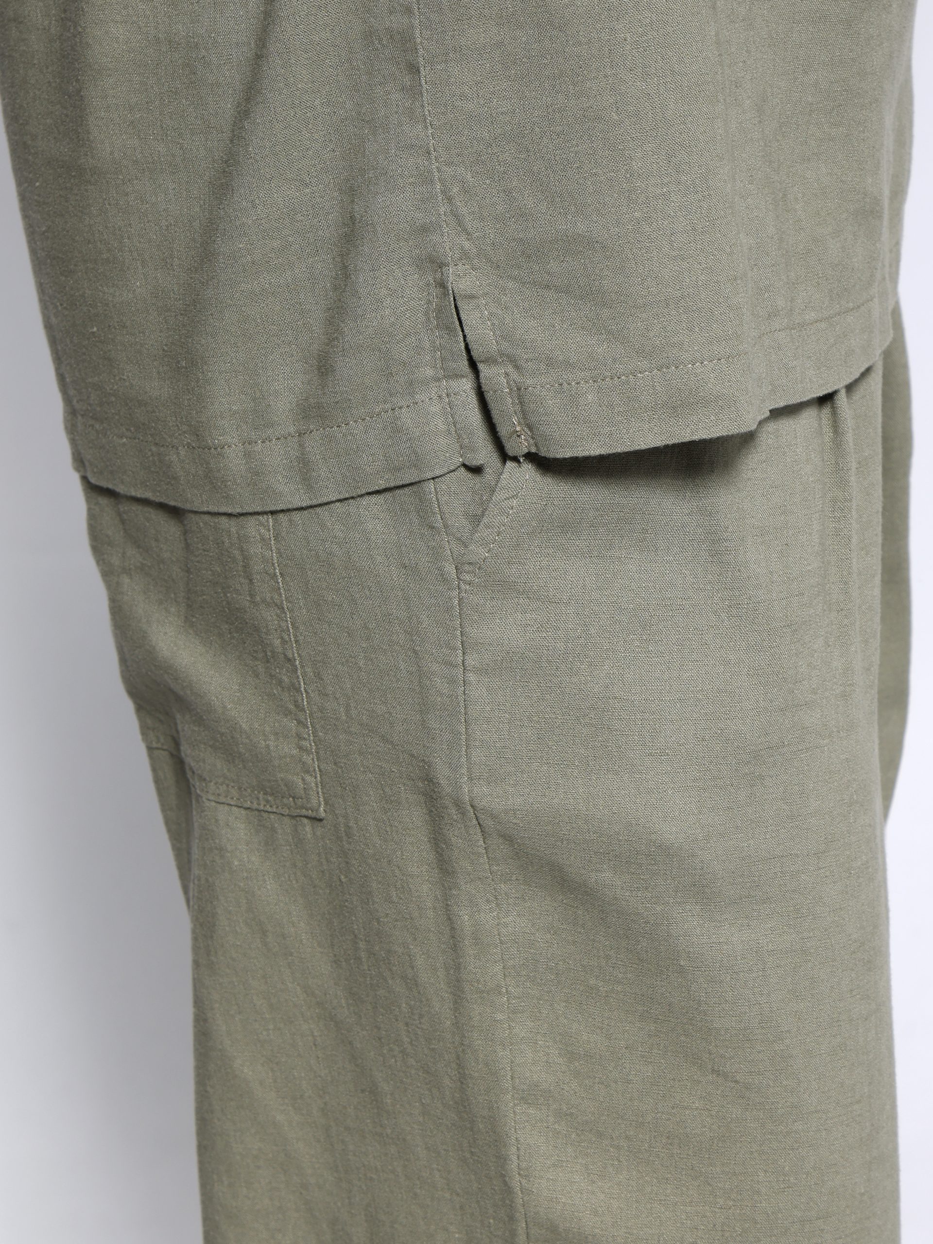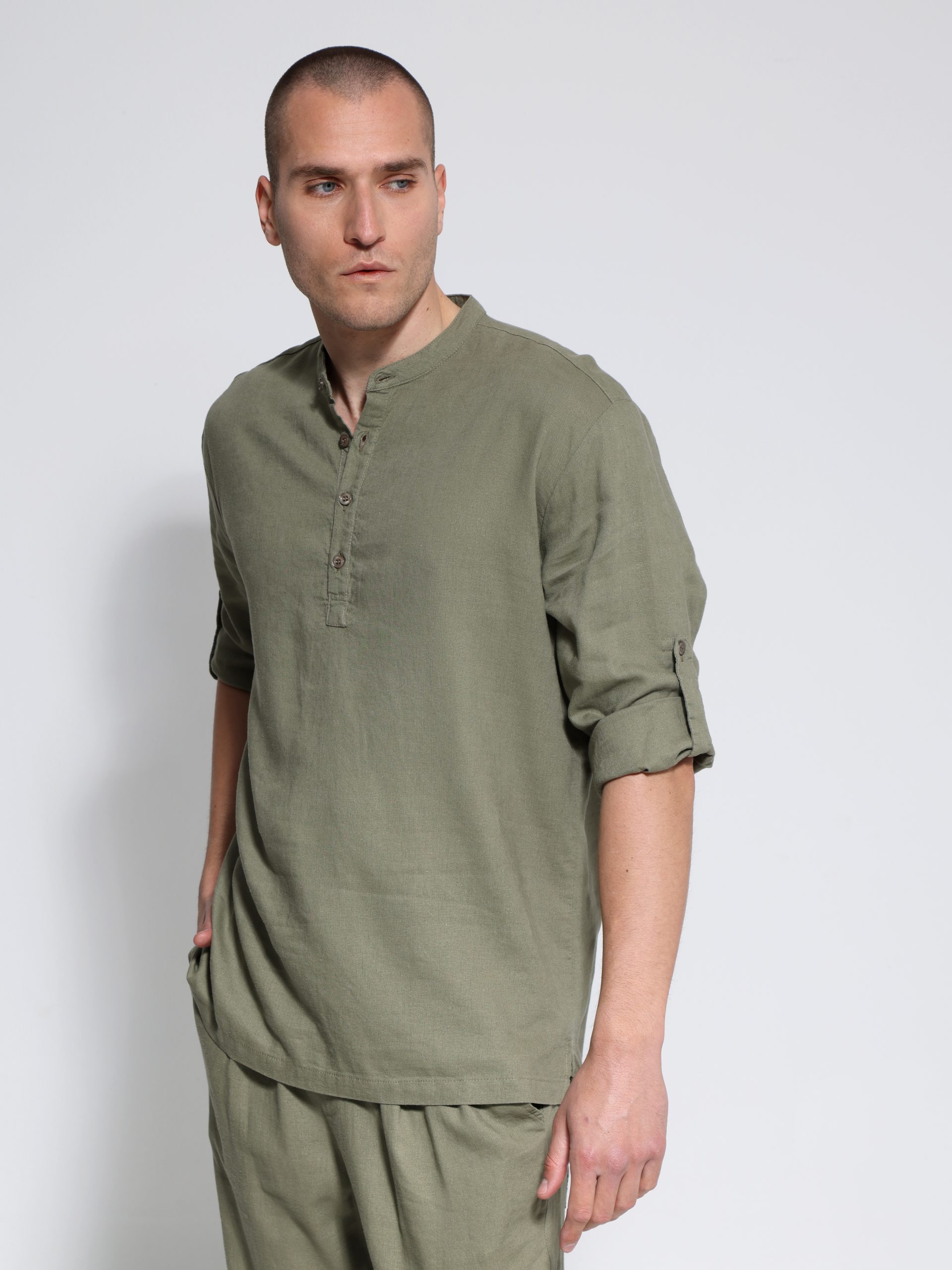 Αυτή η λινή ανδρική πουκαμίσα συνδυάζει την κομψότητα με την άνεση, ιδανική για κάθε περίσταση. Ο μάο γιακάς προσθέτει μια μοντέρνα πινελιά, κάνοντάς την κατάλληλη για casual ή πιο επίσημες εμφανίσεις.