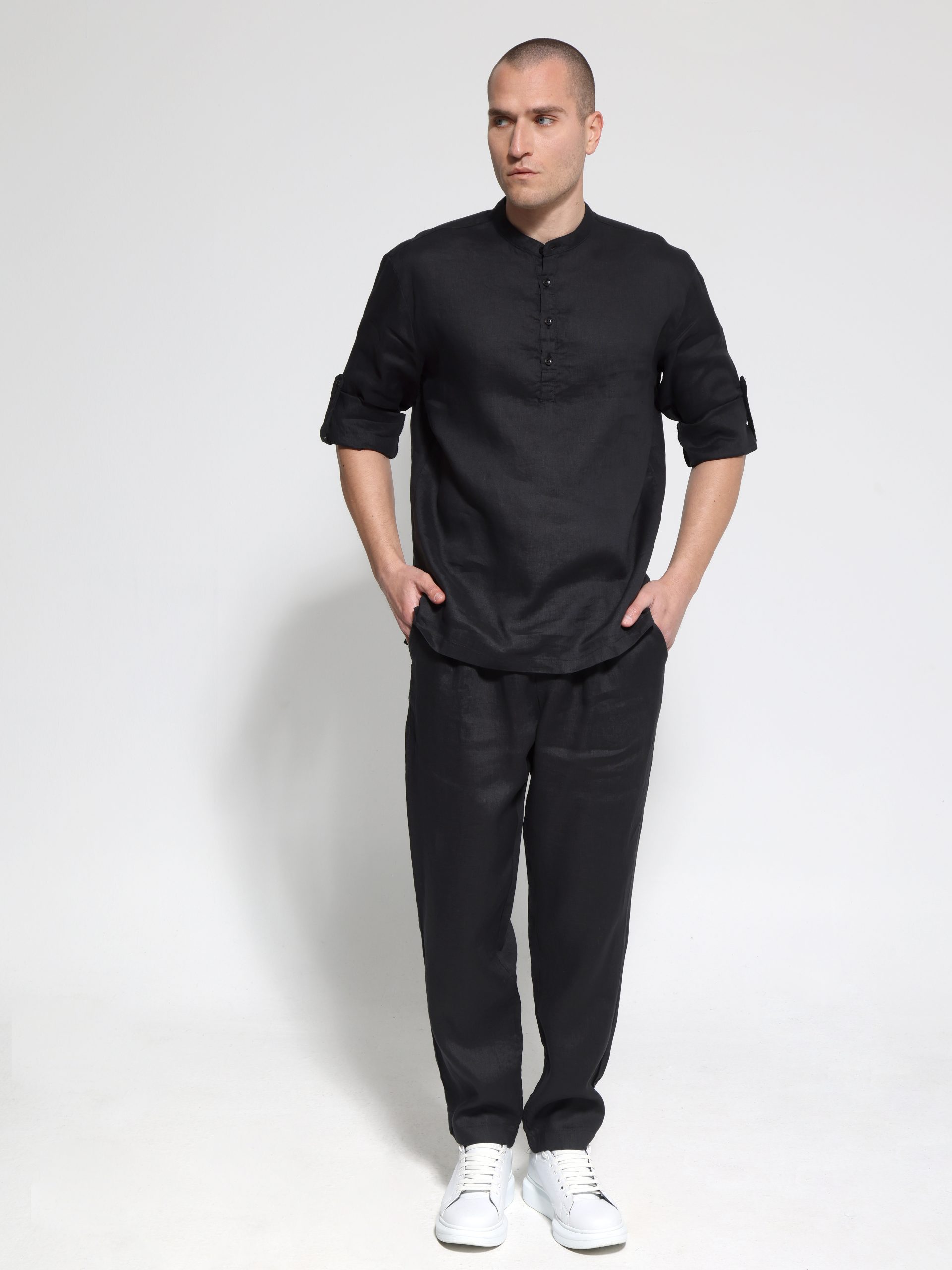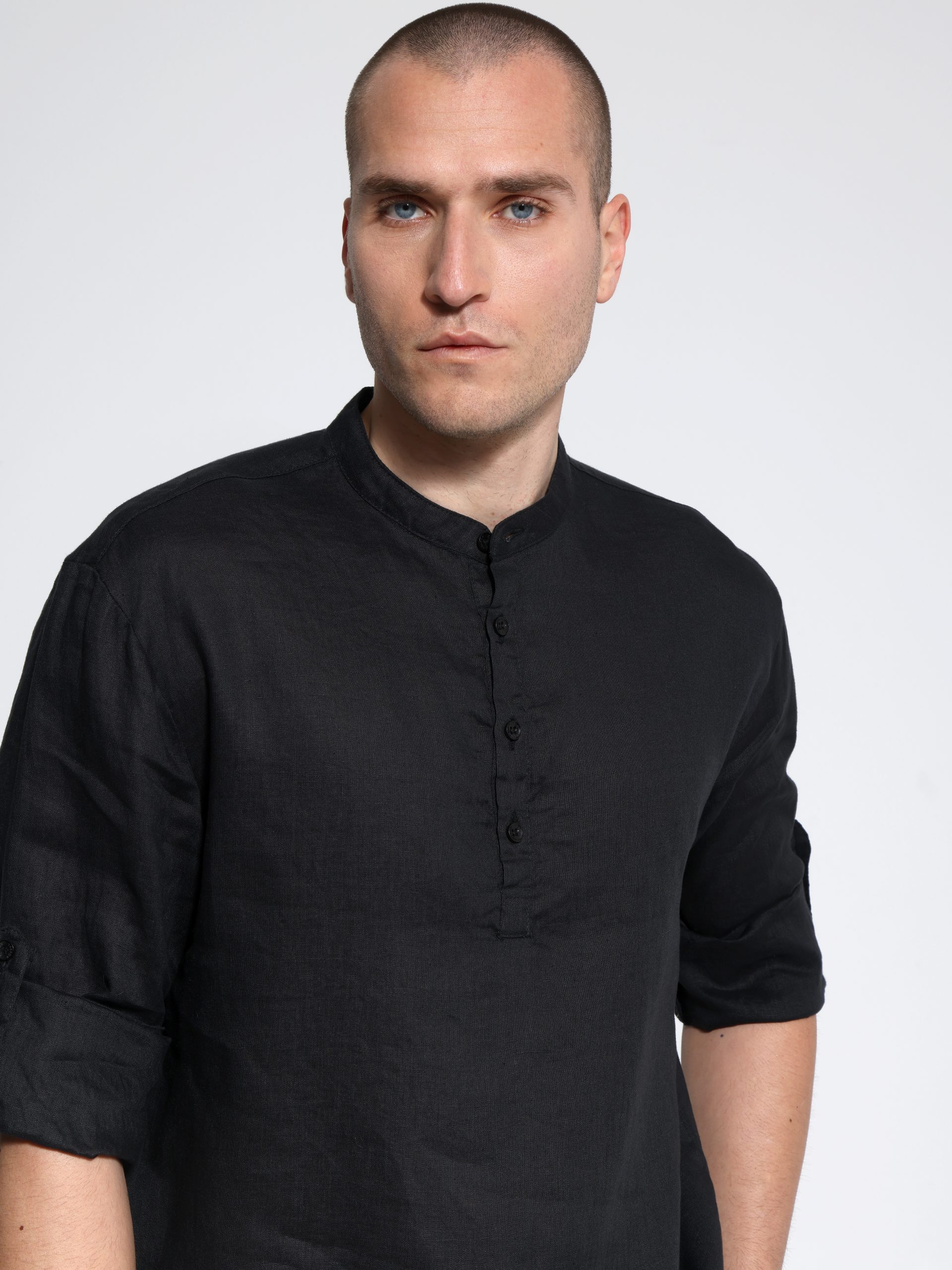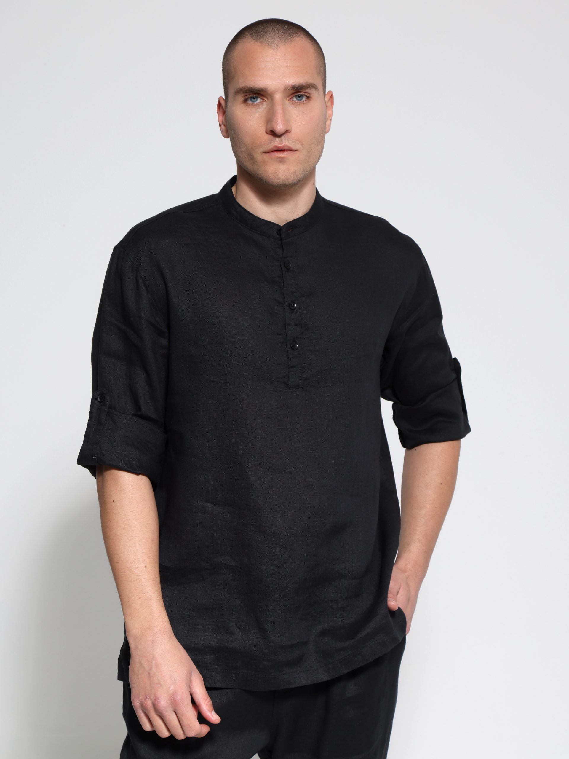 Αυτή η λινή ανδρική πουκαμίσα συνδυάζει την κομψότητα με την άνεση, ιδανική για κάθε περίσταση. Ο μάο γιακάς προσθέτει μια μοντέρνα πινελιά, κάνοντάς την κατάλληλη για casual ή πιο επίσημες εμφανίσεις.