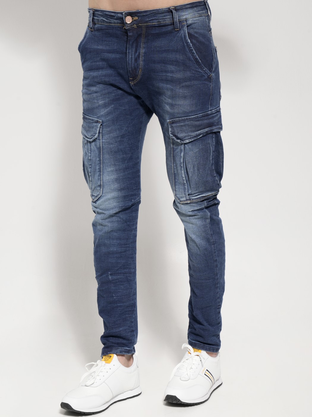 Ανανεώστε την γκαρνταρόμπα σας με αυτό το ανδρικό Cargo Jean LONDON παντελόνι σε μπλε χρώμα με ξεβάμματα.