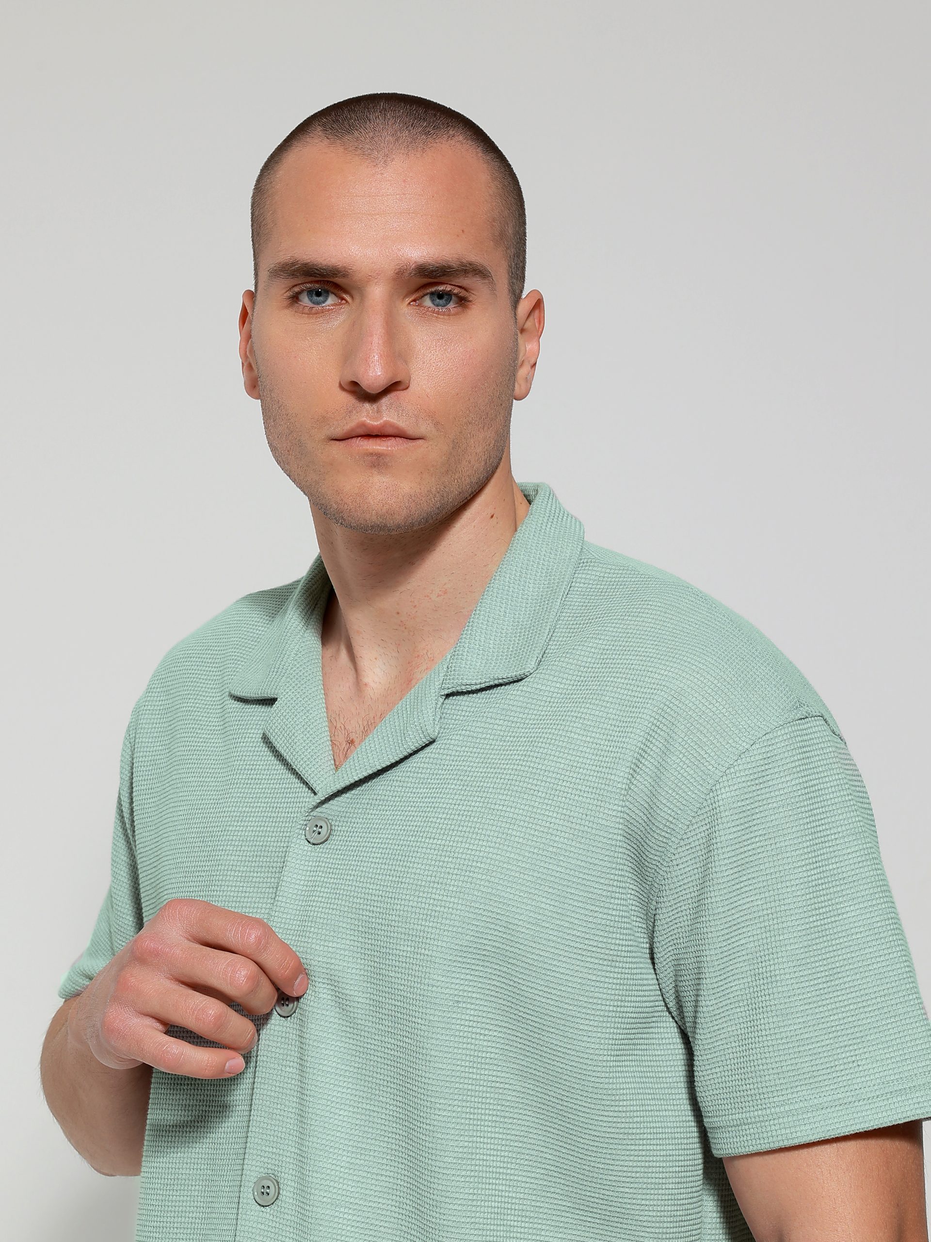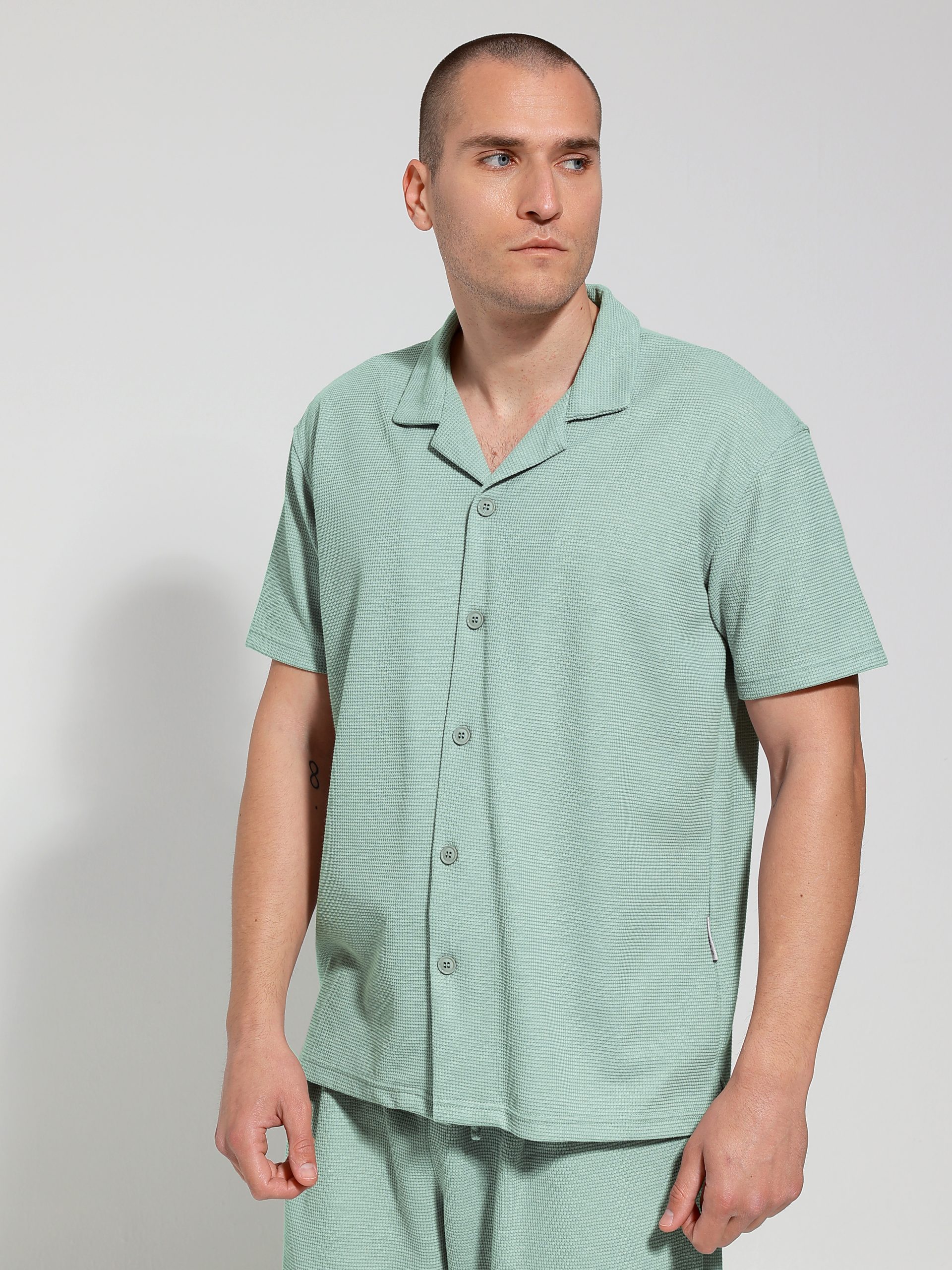Ανακαλύψτε το ανδρικό κοντομάνικο πουκάμισο-μπλούζα, ιδανικό για κάθε καλοκαιρινή εμφάνιση. Το σχέδιο του κλείνει με κουμπάκια έως κάτω, προσφέροντας άνεση και στυλ σε κάθε σας βήμα.