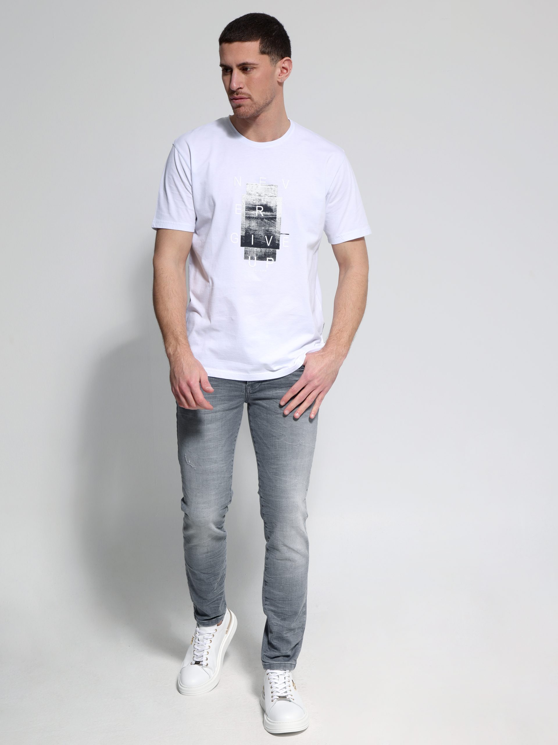 T-shirt ανδρικό σε άσπρο με τύπωμα 10-444