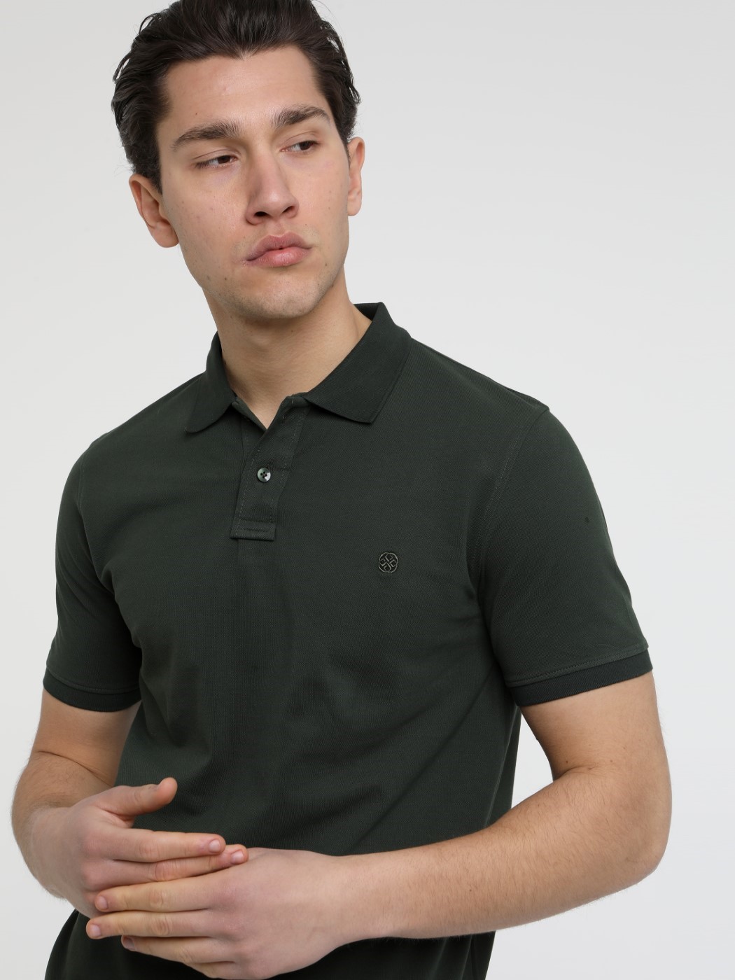 Κοντομάνικo πόλο ανδρικό σε σκούρο πράσινo 10-604