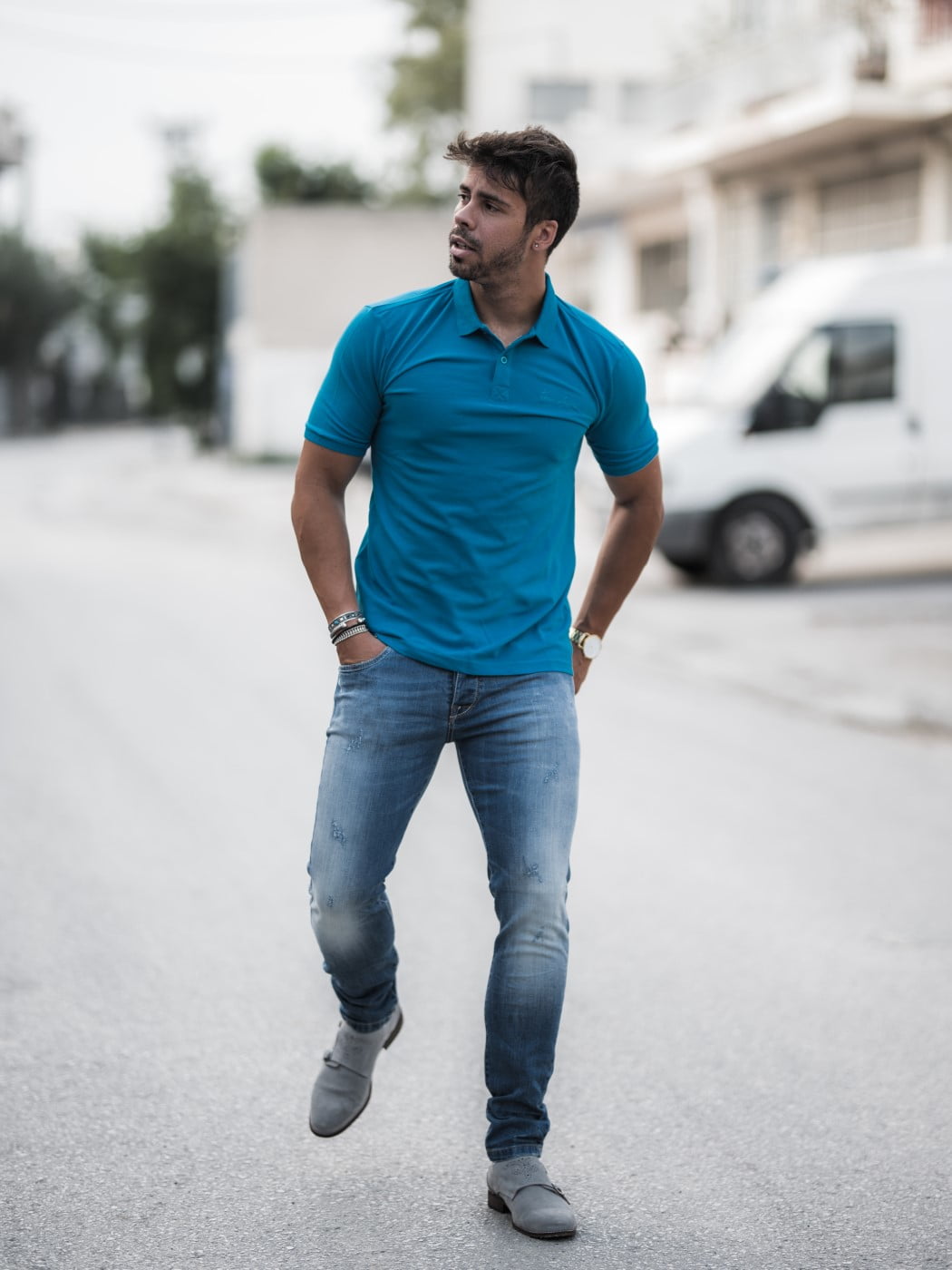 Ανδρική μπλούζα polo με διακριτικό τύπωμα μπροστά, σε στενή γραμμή. Συνδυάζεται με jean για casual εμφανίσεις, Διαστάσεις μοντέλου: Ύψος 1,80 cm Βάρος: 79 kg Το μοντέλο φοράει: L