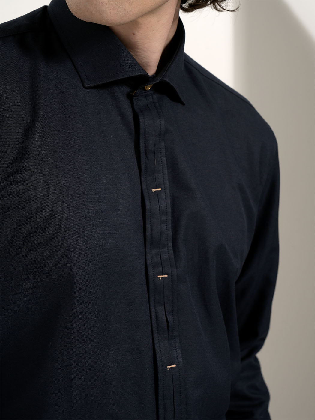 Ανδρικό Πουκάμισο Slim-fit Με Κρυφά Κουμπιά Enzio 33-7438 μαύρο