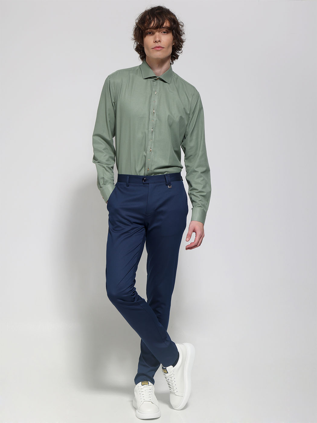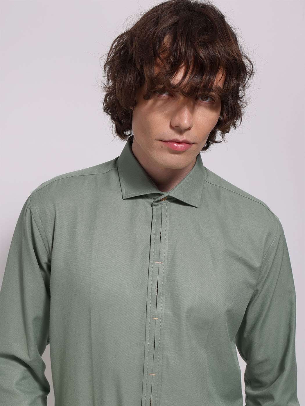 Ανδρικό Πουκάμισο Slim-fit Με Κρυφά Κουμπιά Enzio 33-7438 πράσινο
