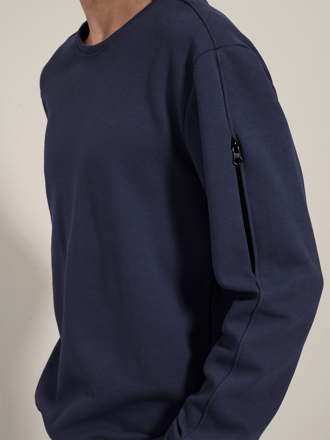 Αυτή η ανδρική μπλούζα με μακρύ μανίκι είναι η ιδανική επιλογή για κάθε άνδρα που θέλει να συνδυάσει στυλ και άνεση. Η κρυφή τσέπη στο πλάι του μανικιού προσθέτει μια πρακτική πινελιά, ενώ η όμορφη πλέξη της προσφέρει μια μοντέρνα αίσθηση που ξεχωρίζει.
