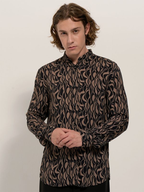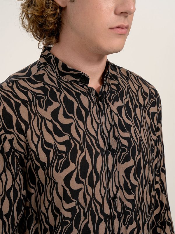 Πουκάμισο με Μάο Γιακά & Σχέδιο Timo 33-7403 Μαύρο/Καφέ Slim-fit