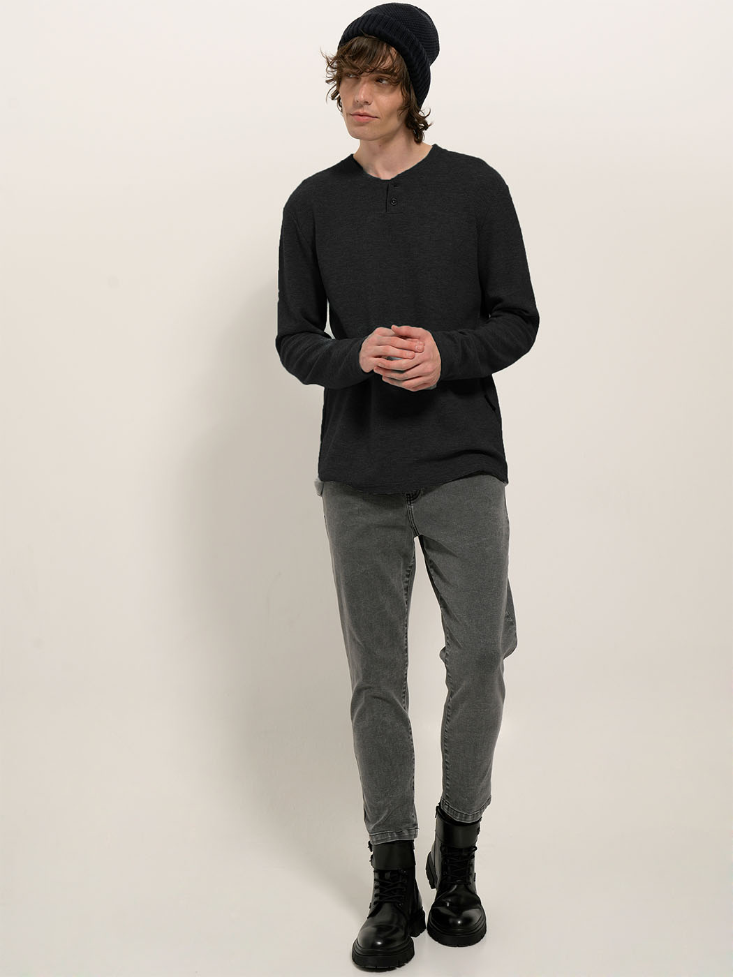 Ανακαλύψτε την ανδρική μπλούζα που θα αναβαθμίσει την γκαρνταρόμπα σας! Με ιδιαίτερη πλέξη και μακρύ μανίκι, αυτή η μπλούζα συνδυάζει στυλ και άνεση, ιδανική για κάθε περίσταση. Το υπέροχο ύφασμα προσφέρει απαλή αίσθηση στο δέρμα, κάνοντάς την ιδανική επιλογή για καθημερινές εμφανίσεις ή βραδινές εξόδους.