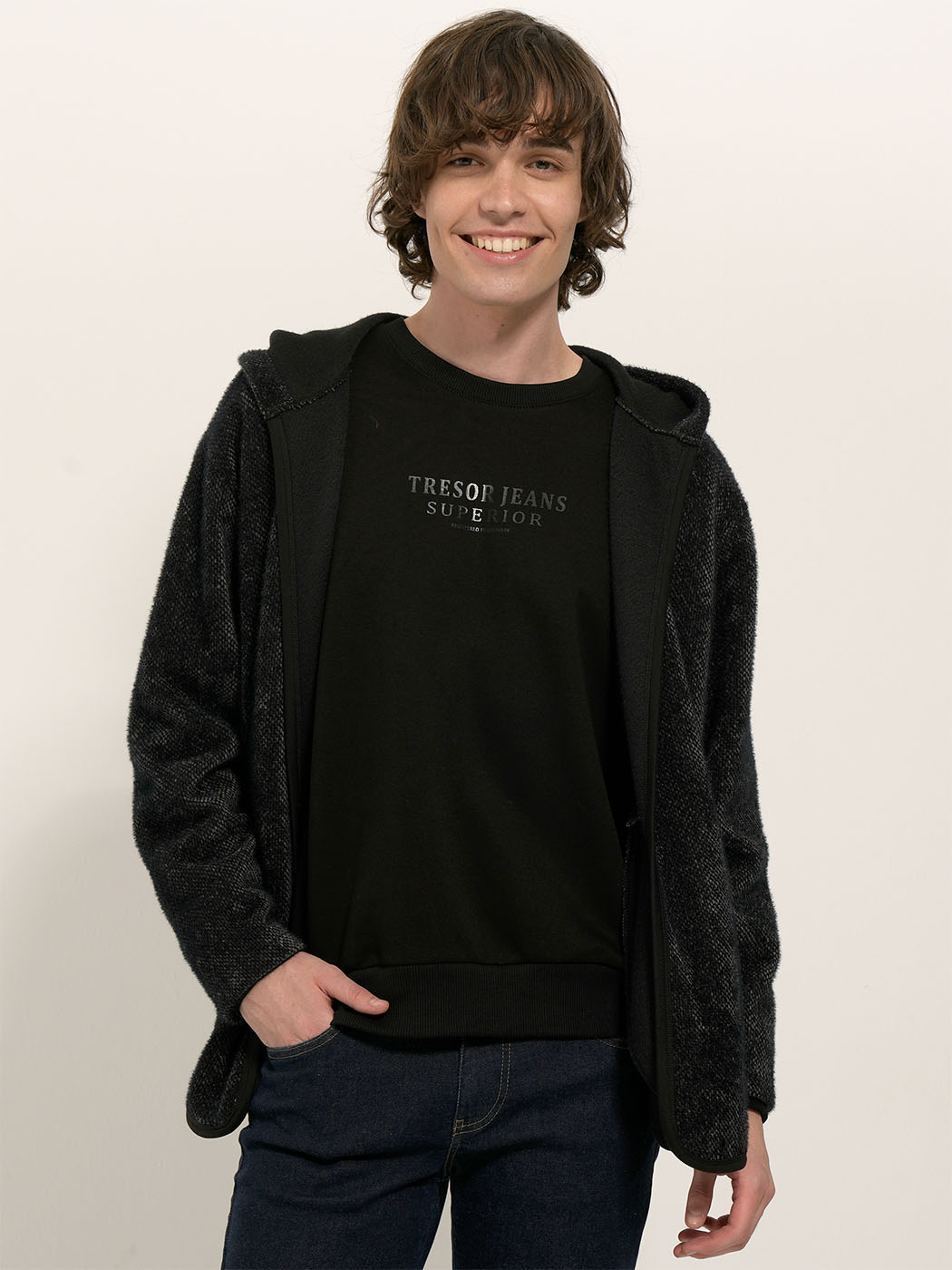 Ανακαλύψτε την ανδρική φούτερ μπλούζα μακρύ μανίκι της TRESOR, σχεδιασμένη για να προσφέρει άνεση και στυλ. Το εξαιρετικής ποιότητας πανί της είναι μαλακό και ευχάριστο στην αφή, ιδανικό για τις κρύες μέρες του χειμώνα.