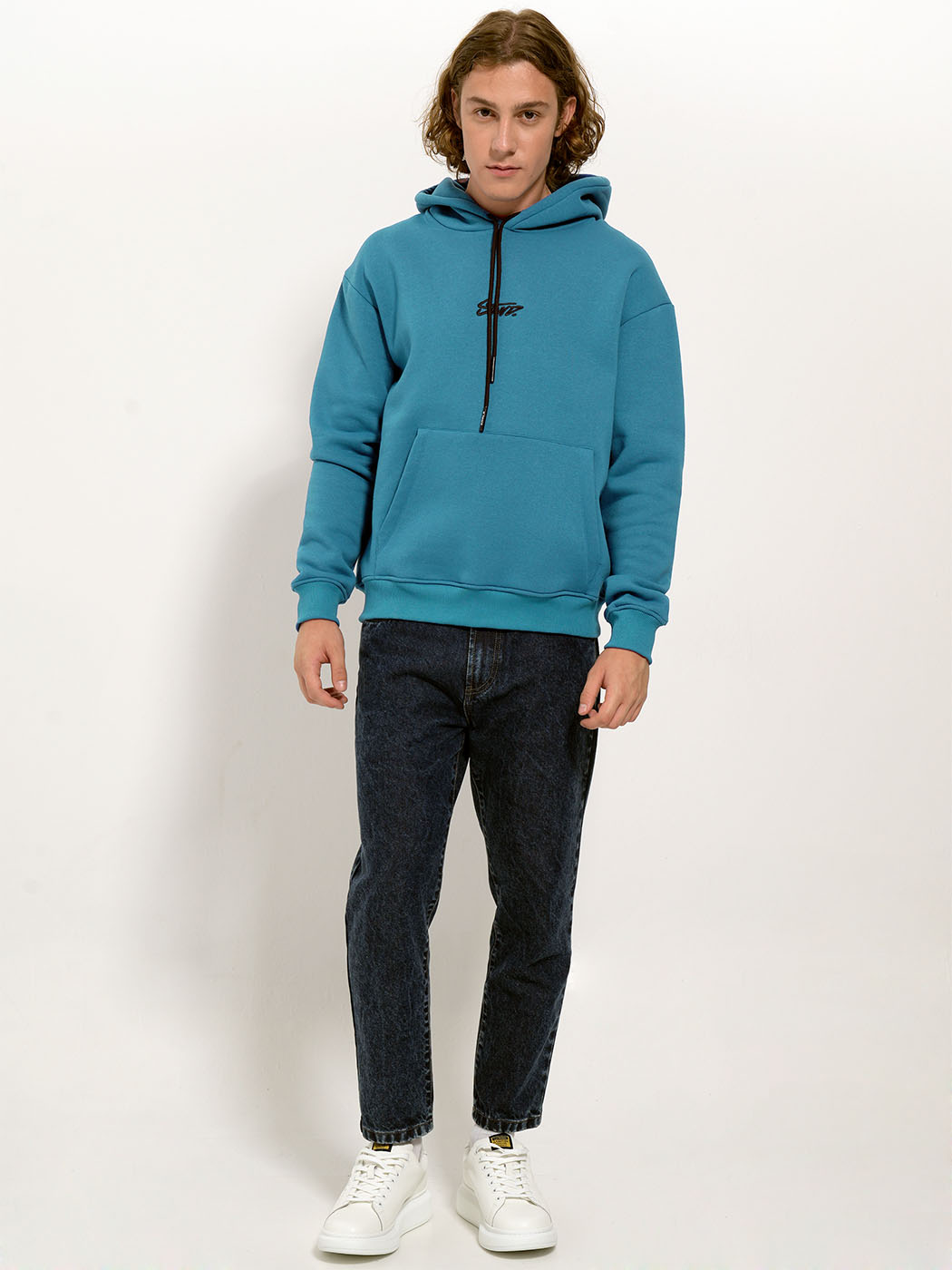 Μπλούζα Hoodie Με Κουκούλα Oversize CARLO 206053 πετρόλ